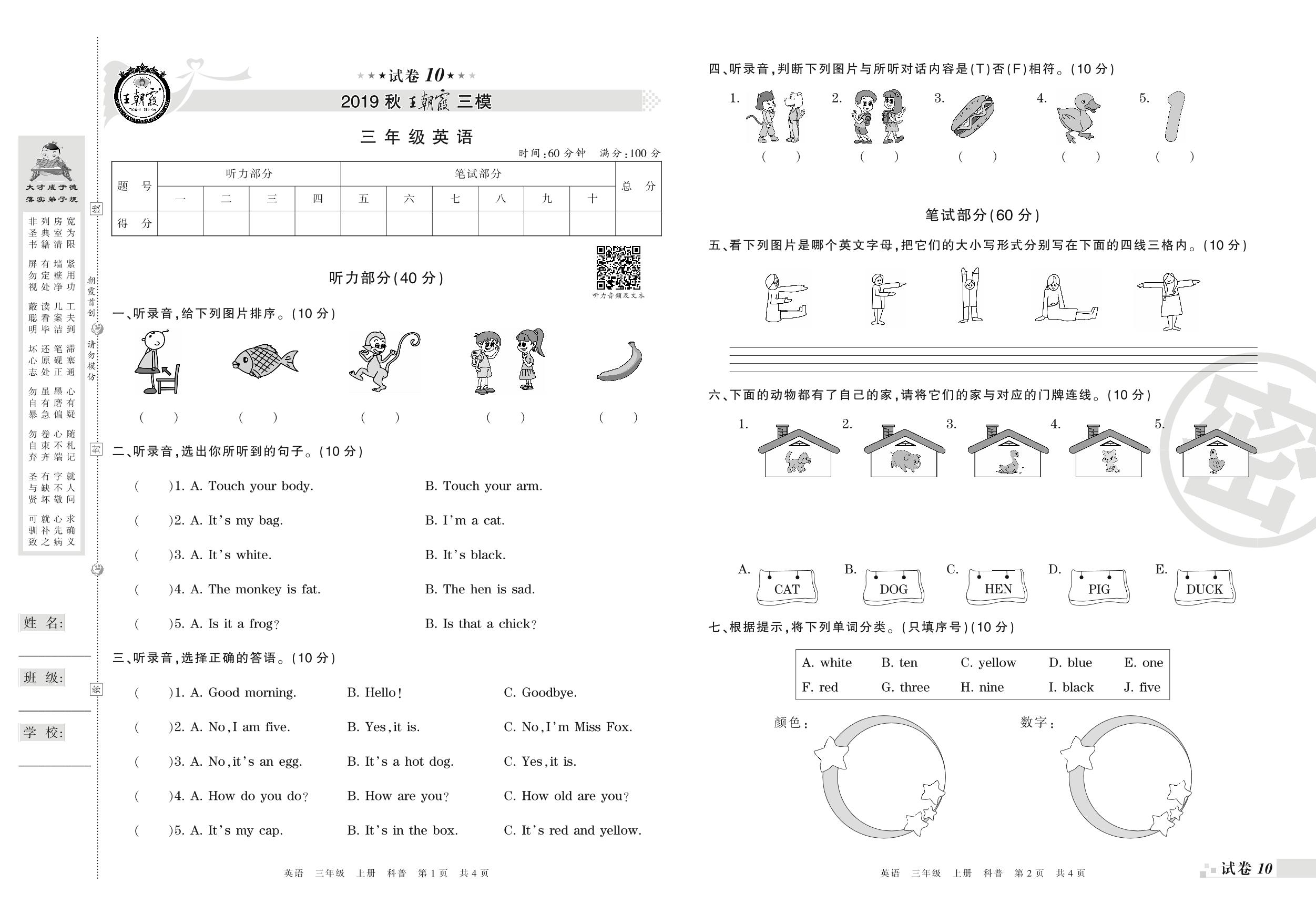 王朝霞期末模拟卷三年级上册英语(科普版)_R210806191534【10】