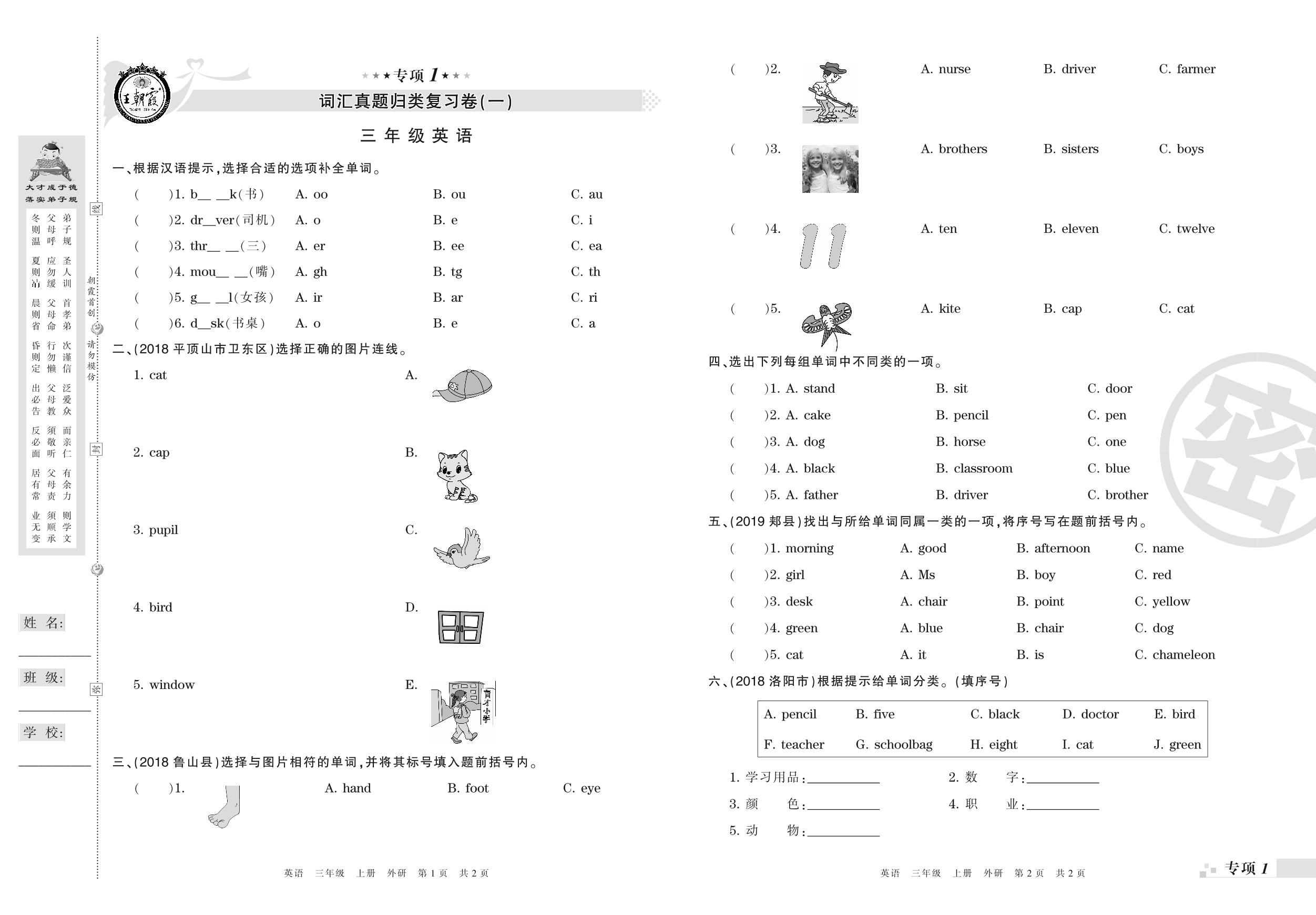 王朝霞期末专项卷——词汇真题归类复习三年级上册英语(外研版)_R210806191622【0】