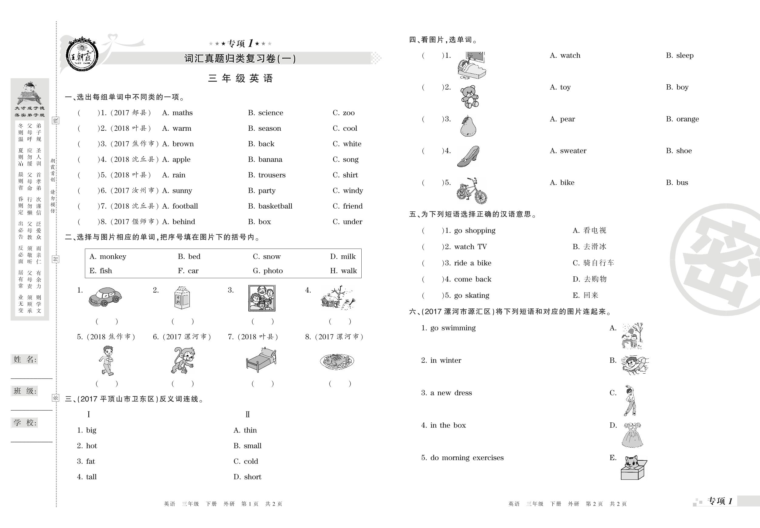 王朝霞期末专项卷——词汇(一)(二)真题归类复习卷三年级下册英语(外研版)_R210806191904【0】