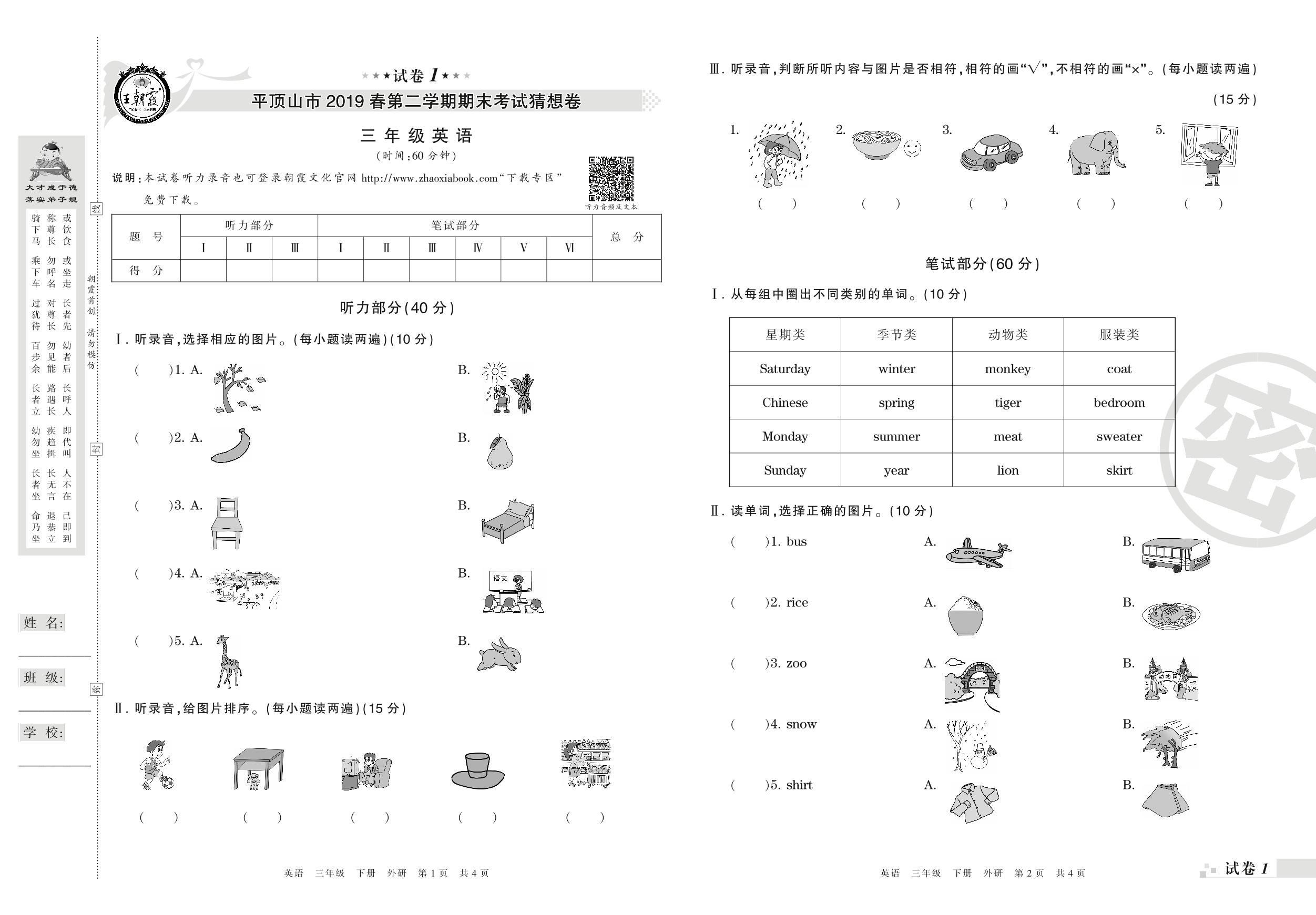 2018-2019学年第二学期平顶山市猜想卷三年级英语试卷(外研版)【1】