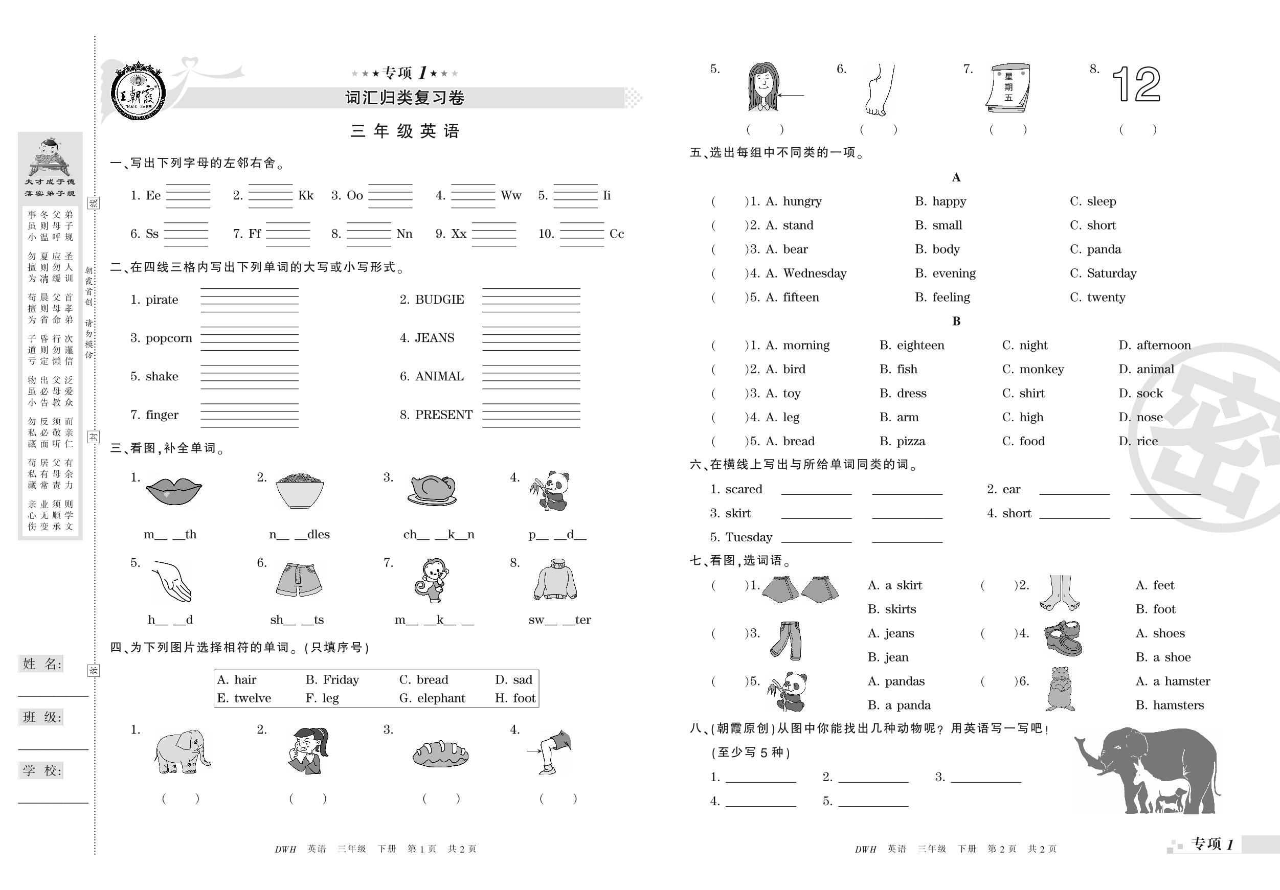 王朝霞期末专项卷——词汇、句子真题归类复习卷三年级下册英语(剑桥版)_R210806192146【0】