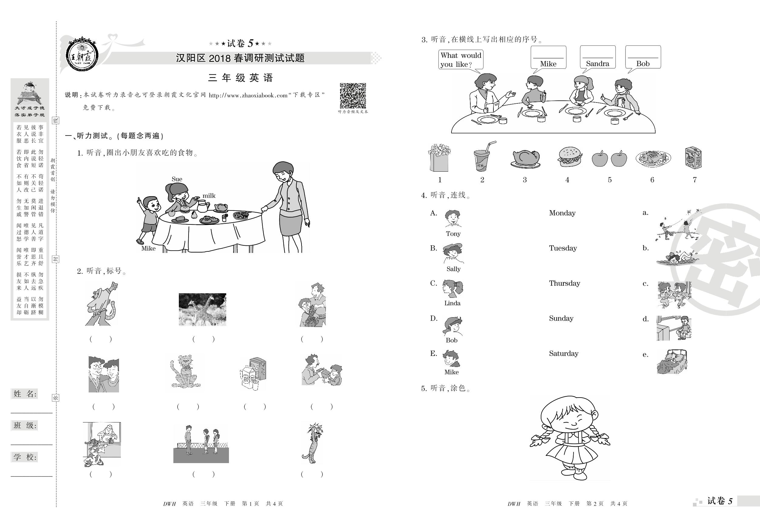 2017-2018学年第二学期武汉市汉阳区三年级英语试卷(剑桥版)【5】