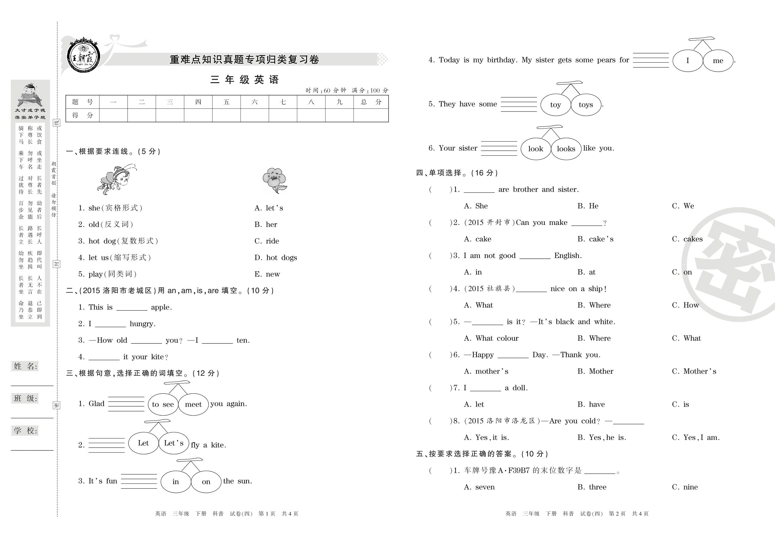 王朝霞期末专项卷三年级下册英语(科普版)_R210806192355【4】