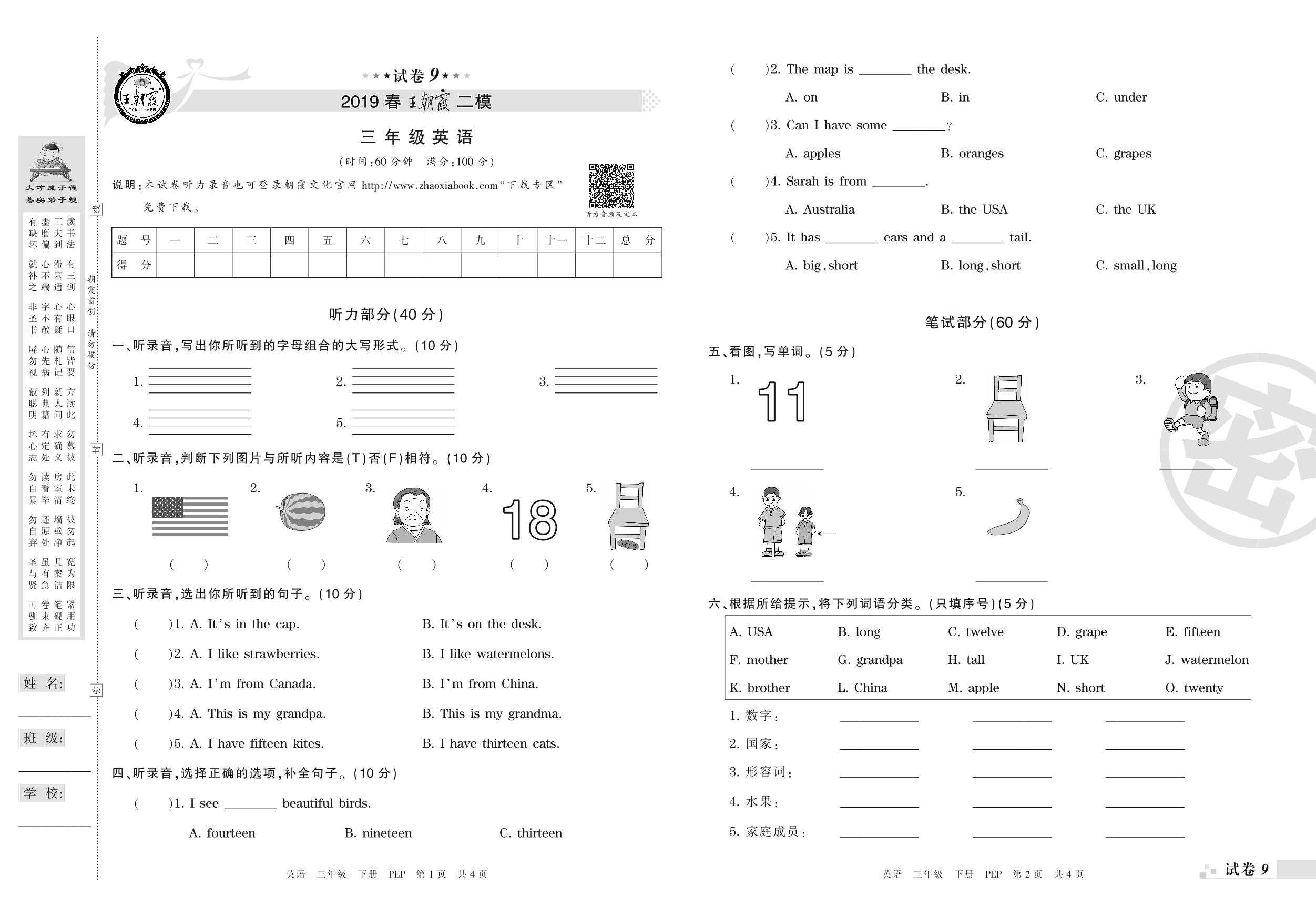 王朝霞期末模拟卷三年级下册英语(PEP版)_R210806192612【9】
