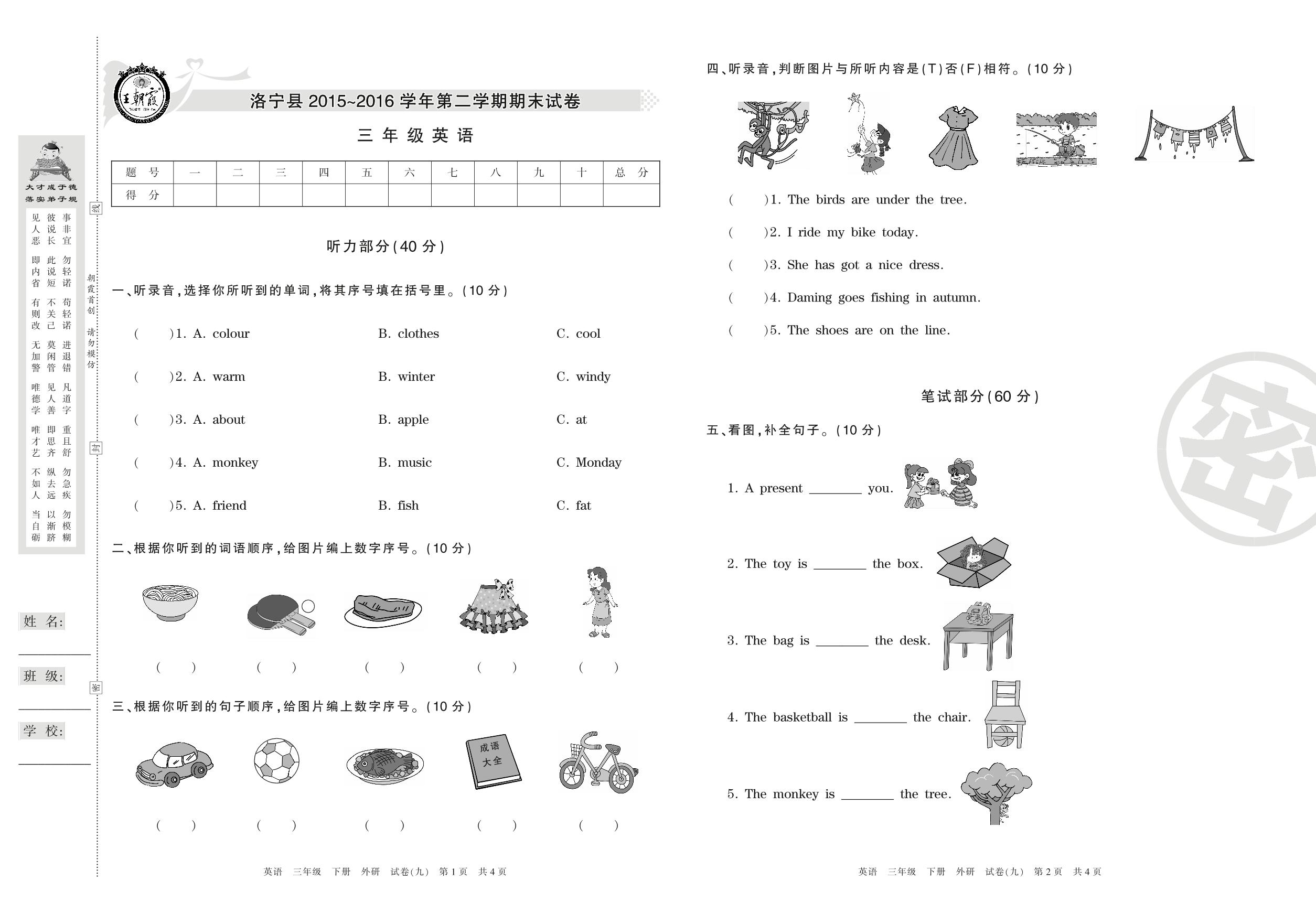 2015-2016学年第二学期洛阳市洛宁县三年级英语试卷(外研版)【9】
