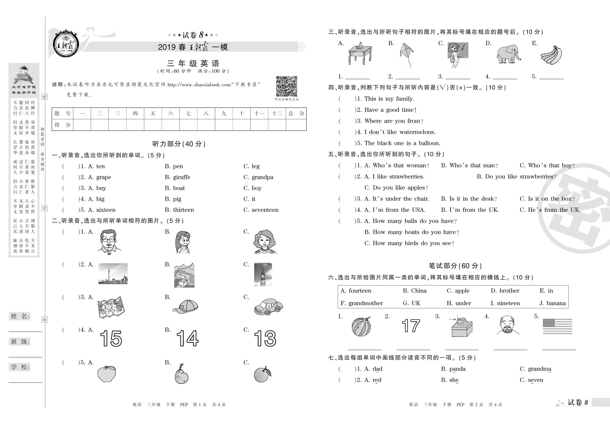 王朝霞期末模拟卷三年级下册英语(PEP版)_R210806192741【8】