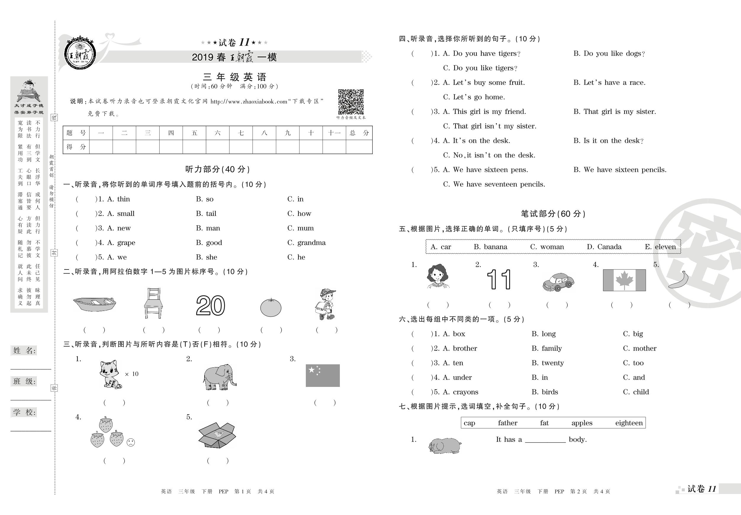 王朝霞期末模拟卷三年级下册英语(PEP版)_R210806193027【11】