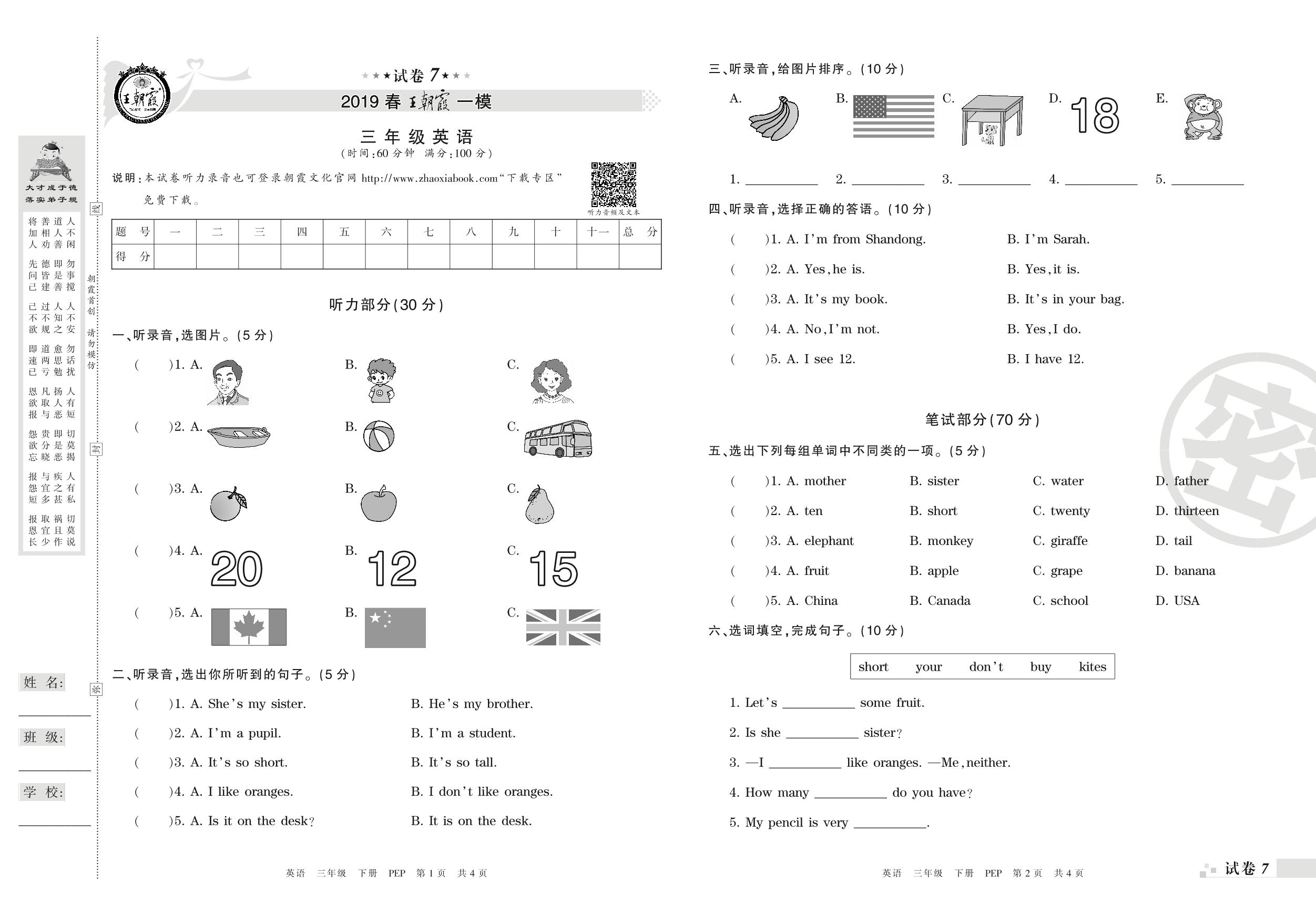 王朝霞期末模拟卷三年级下册英语(PEP版)_R210806193111【7】