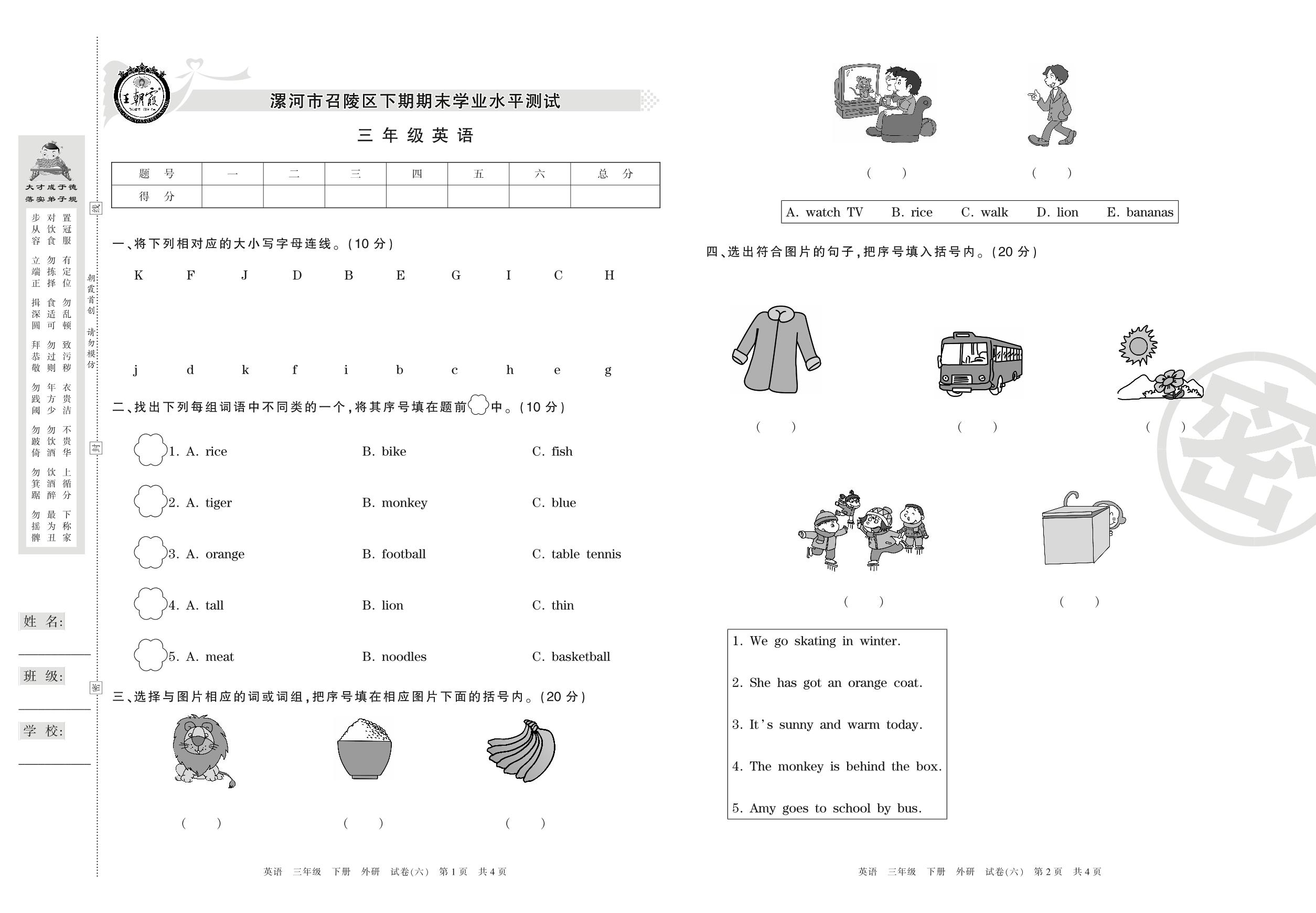 2015-2016学年第二学期漯河市召陵区三年级英语试卷(外研版)【6】