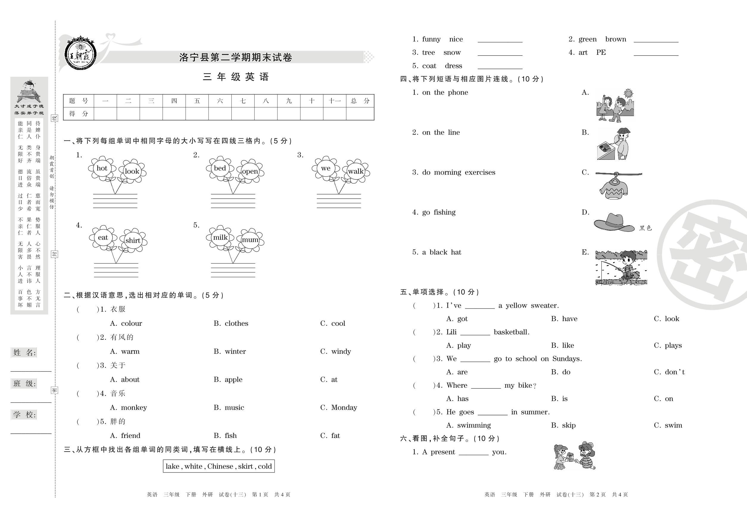 三年级英语外研版(三起始)下册期末卷