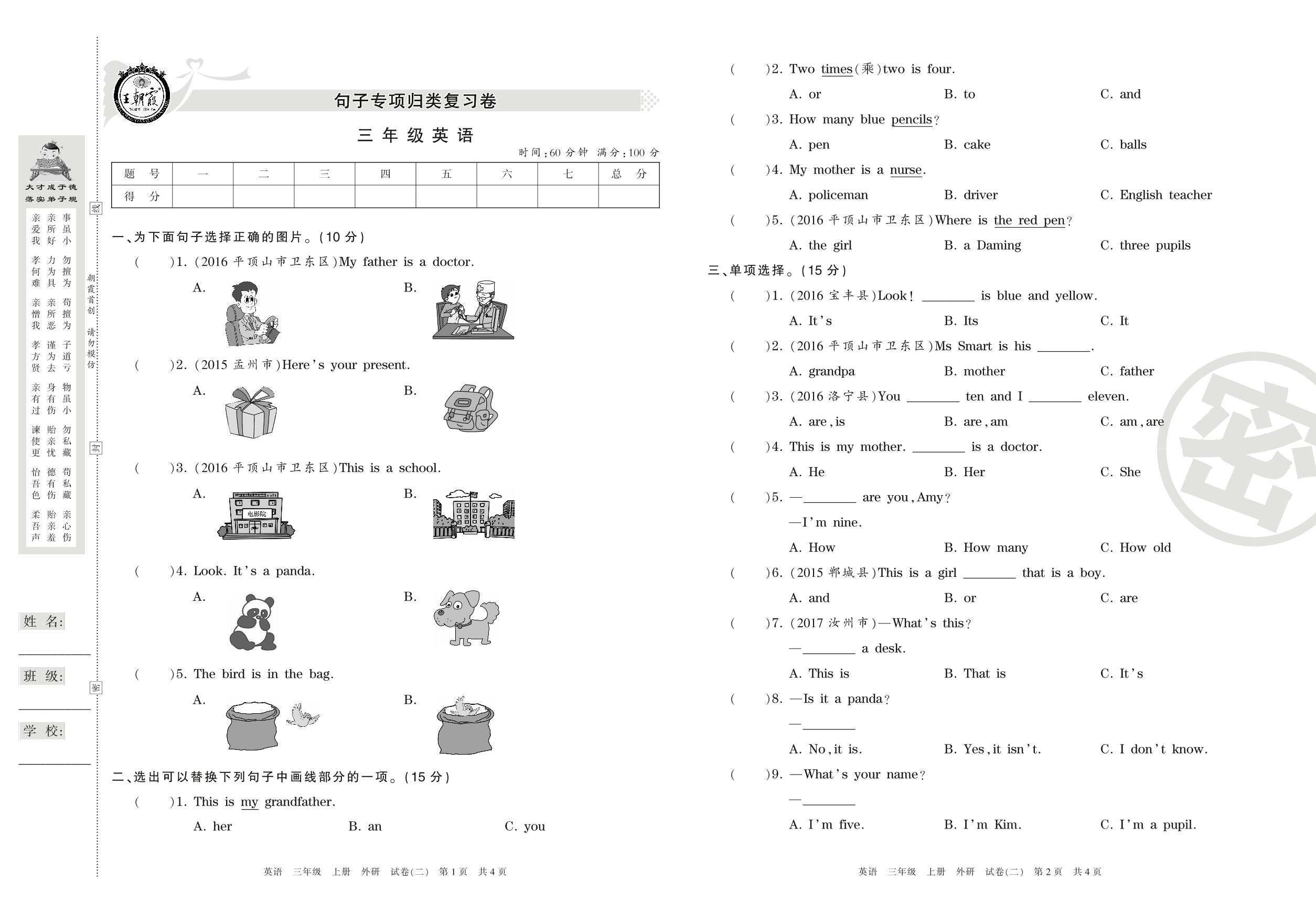 王朝霞期末专项卷三年级上册英语(外研版)【2】