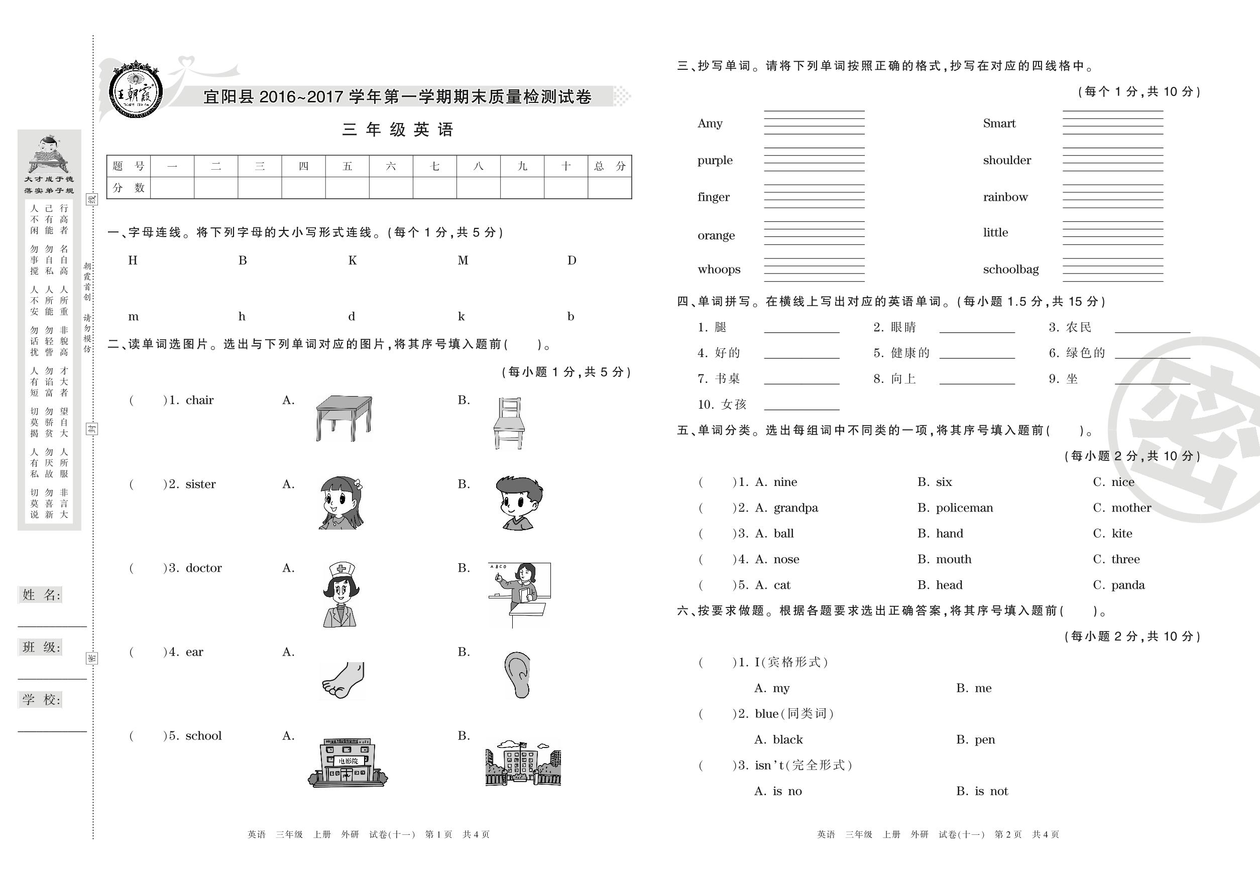 2016-2017学年第一学期洛阳市宜阳县三年级英语试卷(外研版)【11】