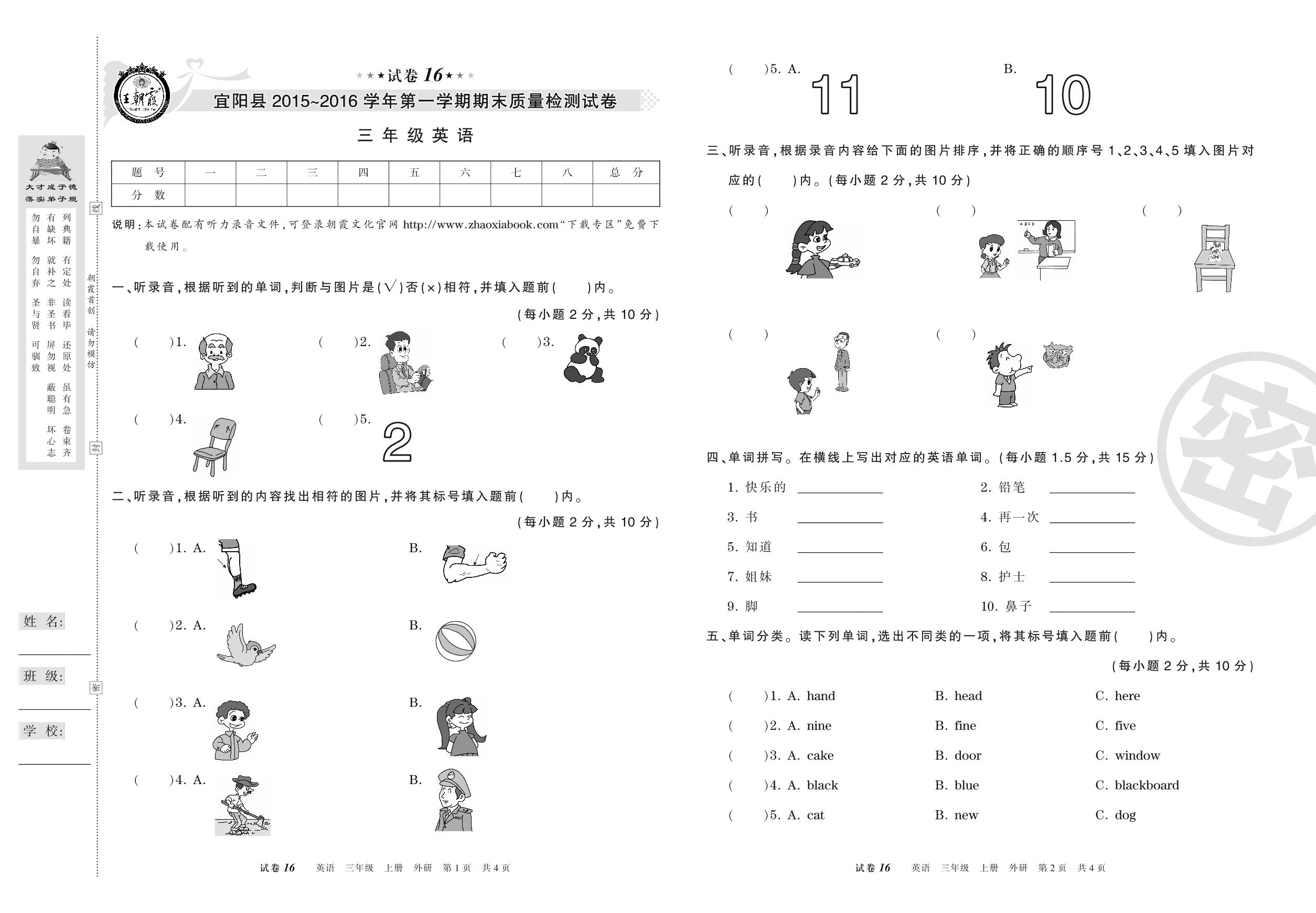 2015-2016学年第一学期洛阳市宜阳县三年级英语试卷(外研版)【16】