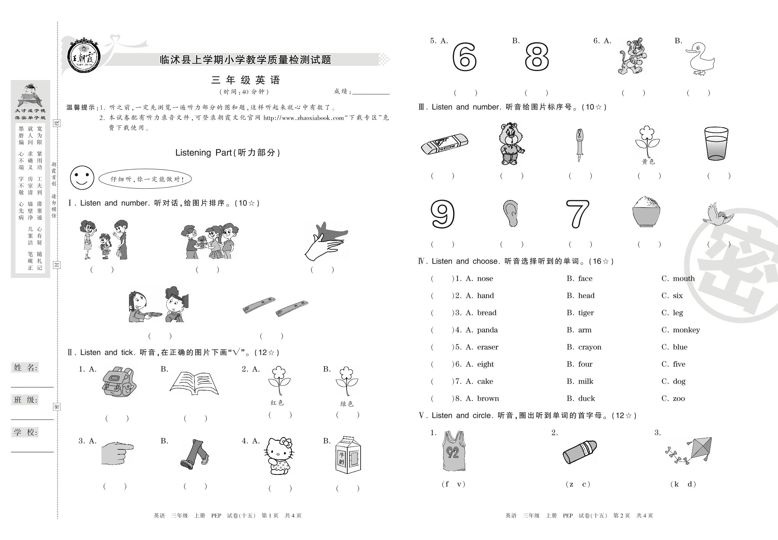 2016-2017学年第一学期临沂市临沭县三年级英语试卷(PEP版)【15】