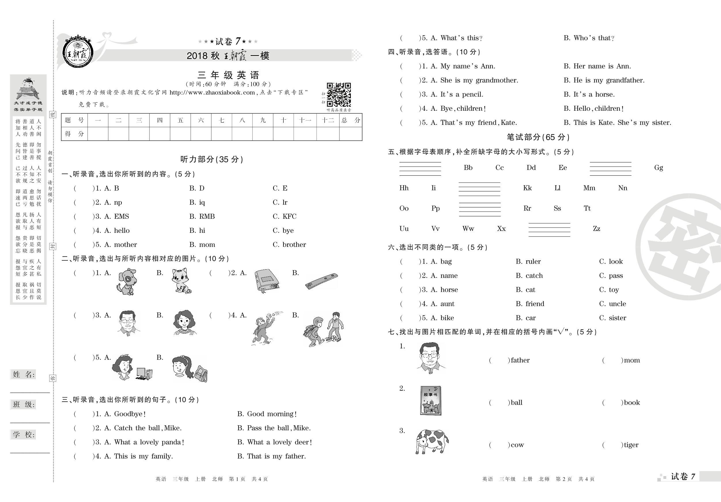 王朝霞期末模拟卷三年级上册英语(北师版)_R210806194100【7】