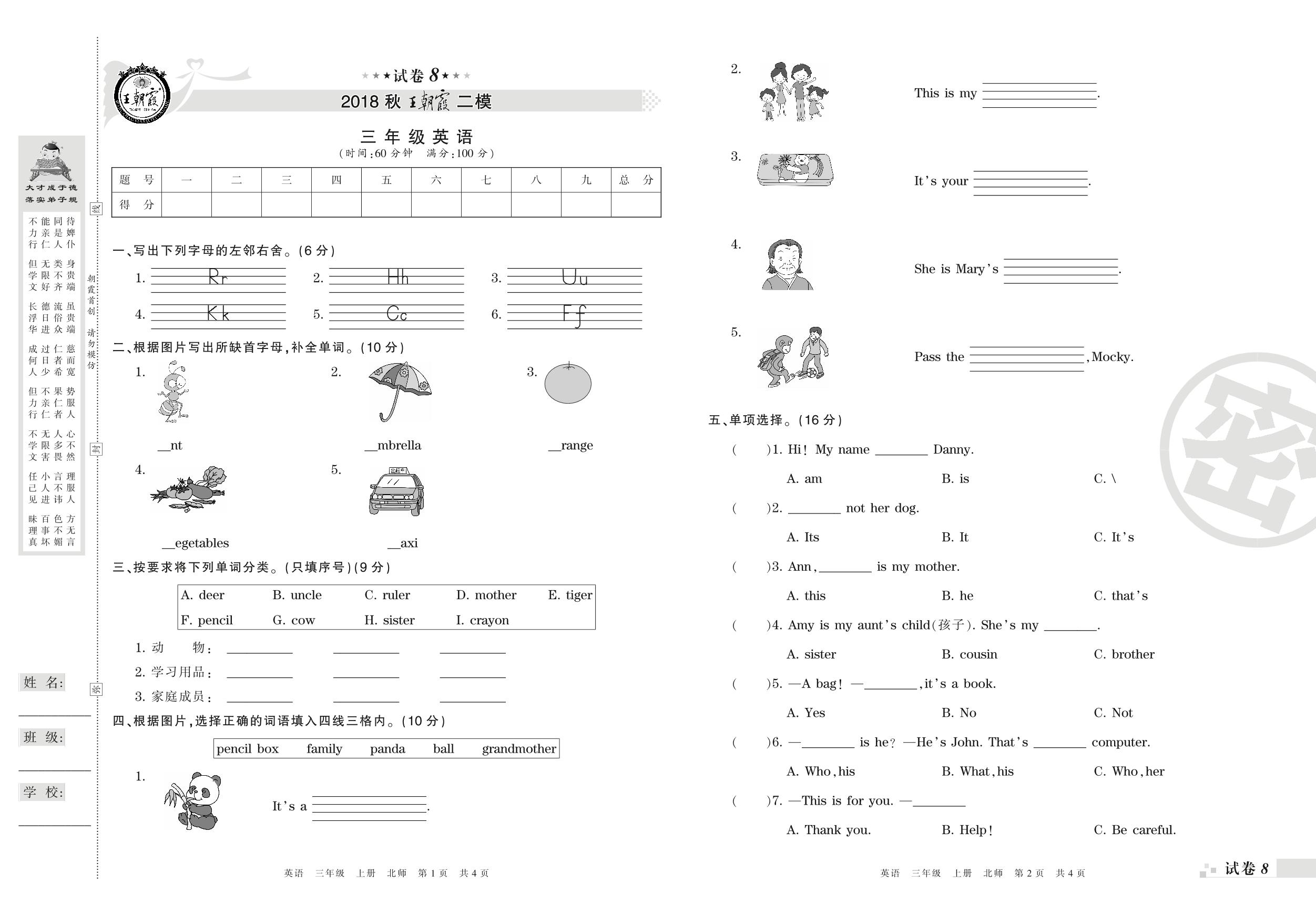 王朝霞期末模拟卷三年级上册英语(北师版)_R210806194103【8】