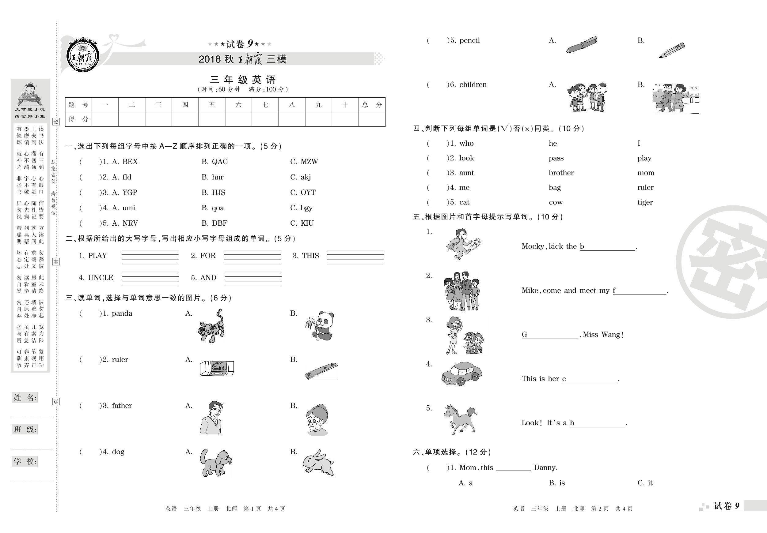 王朝霞期末模拟卷三年级上册英语(北师版)_R210806194106【9】