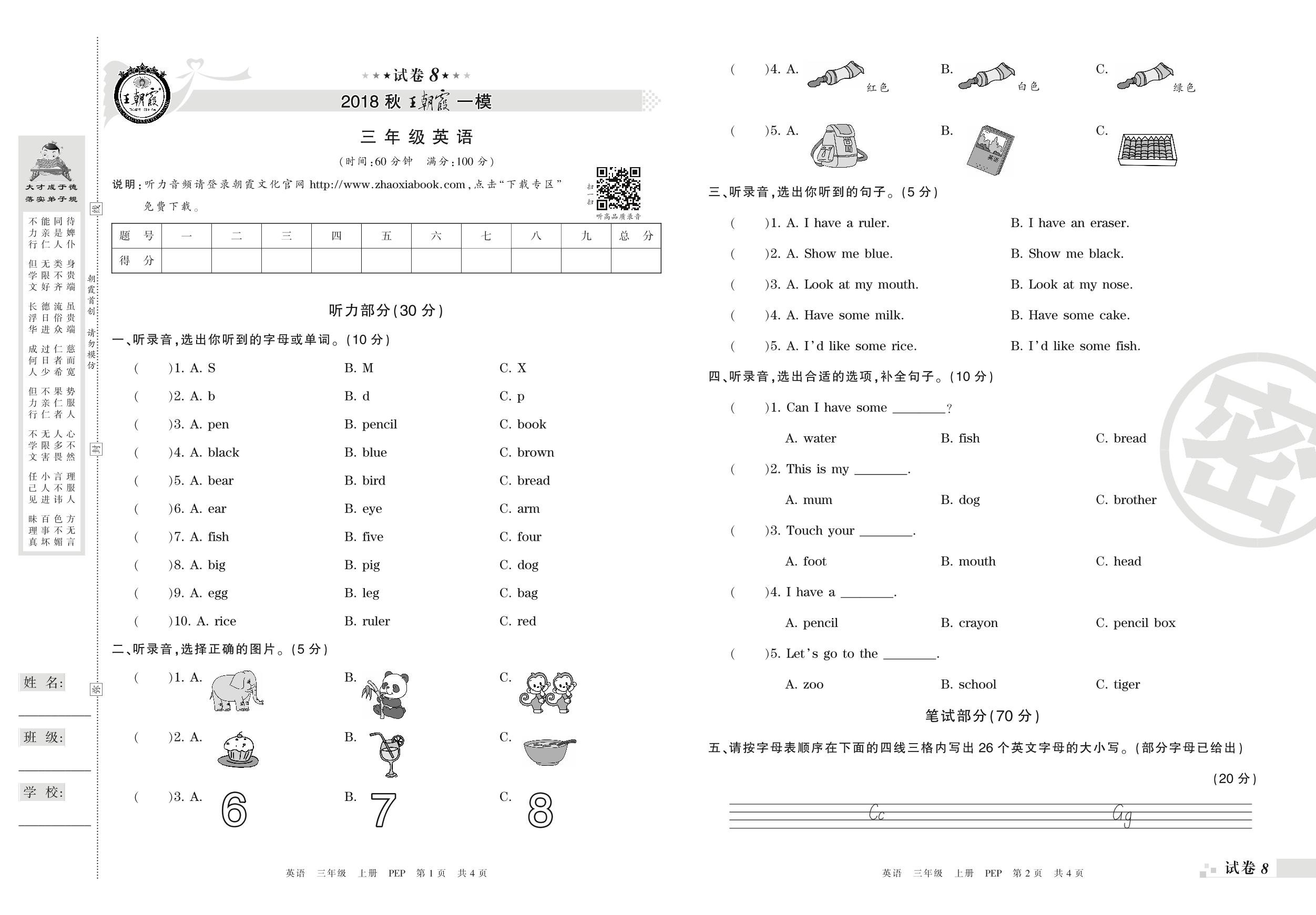 王朝霞期末模拟卷三年级上册英语(PEP版)_R210806194251【8】
