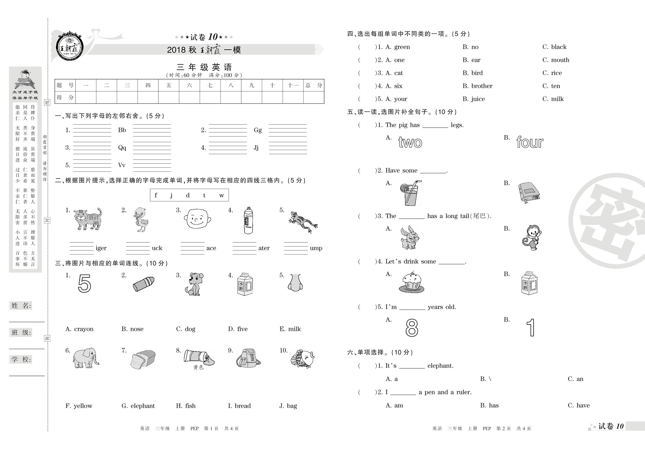 王朝霞期末模拟卷三年级上册英语(PEP版)_R210806194356【10】