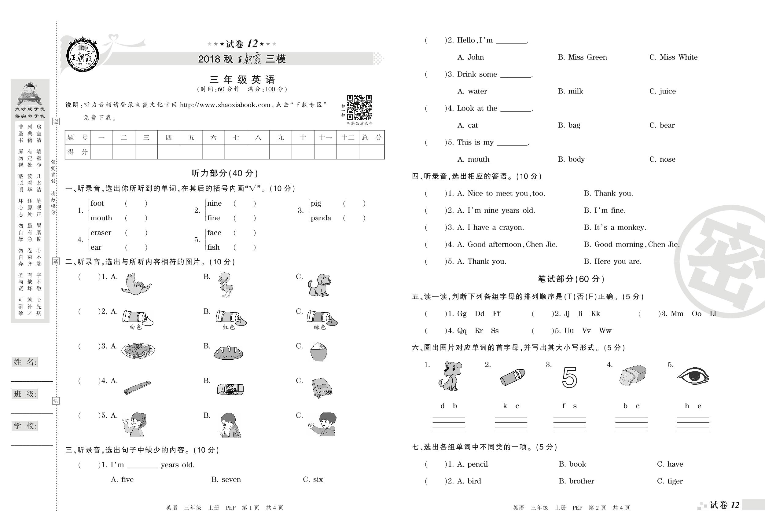 王朝霞期末模拟卷三年级上册英语(PEP版)_R210806194408【12】
