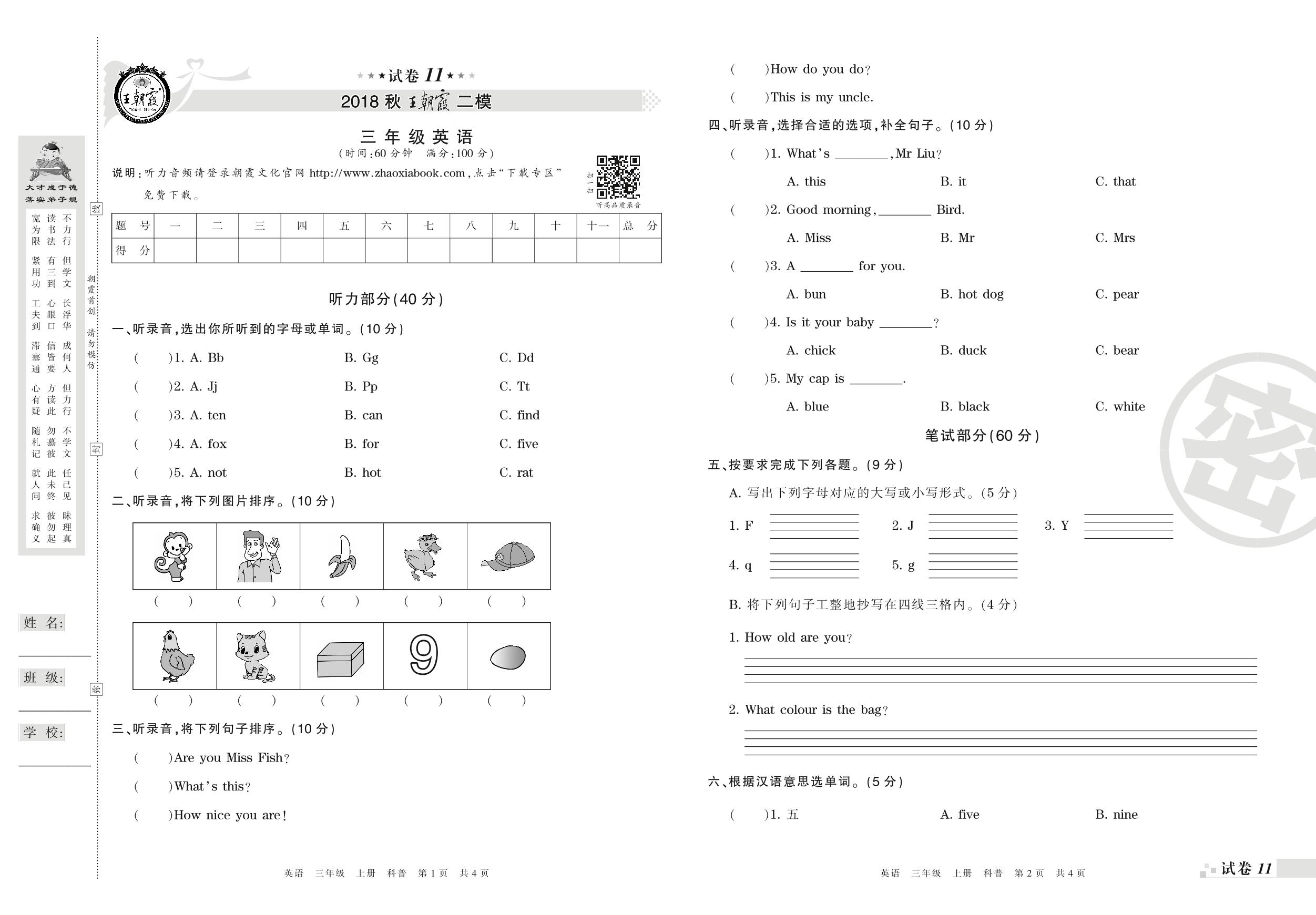 王朝霞期末模拟卷三年级上册英语(科普版)_R210806194455【11】