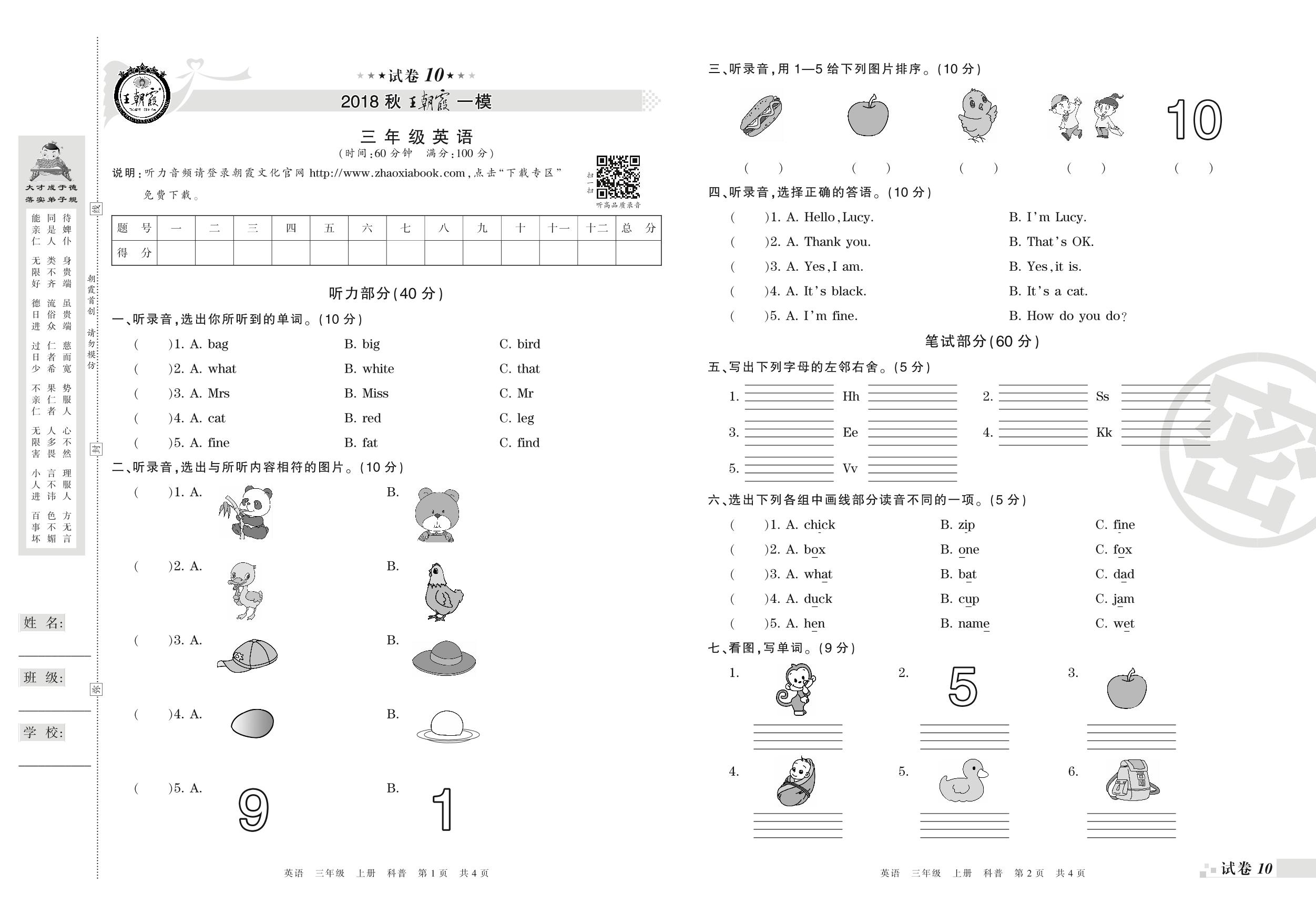 王朝霞期末模拟卷三年级上册英语(科普版)_R210806194557【10】