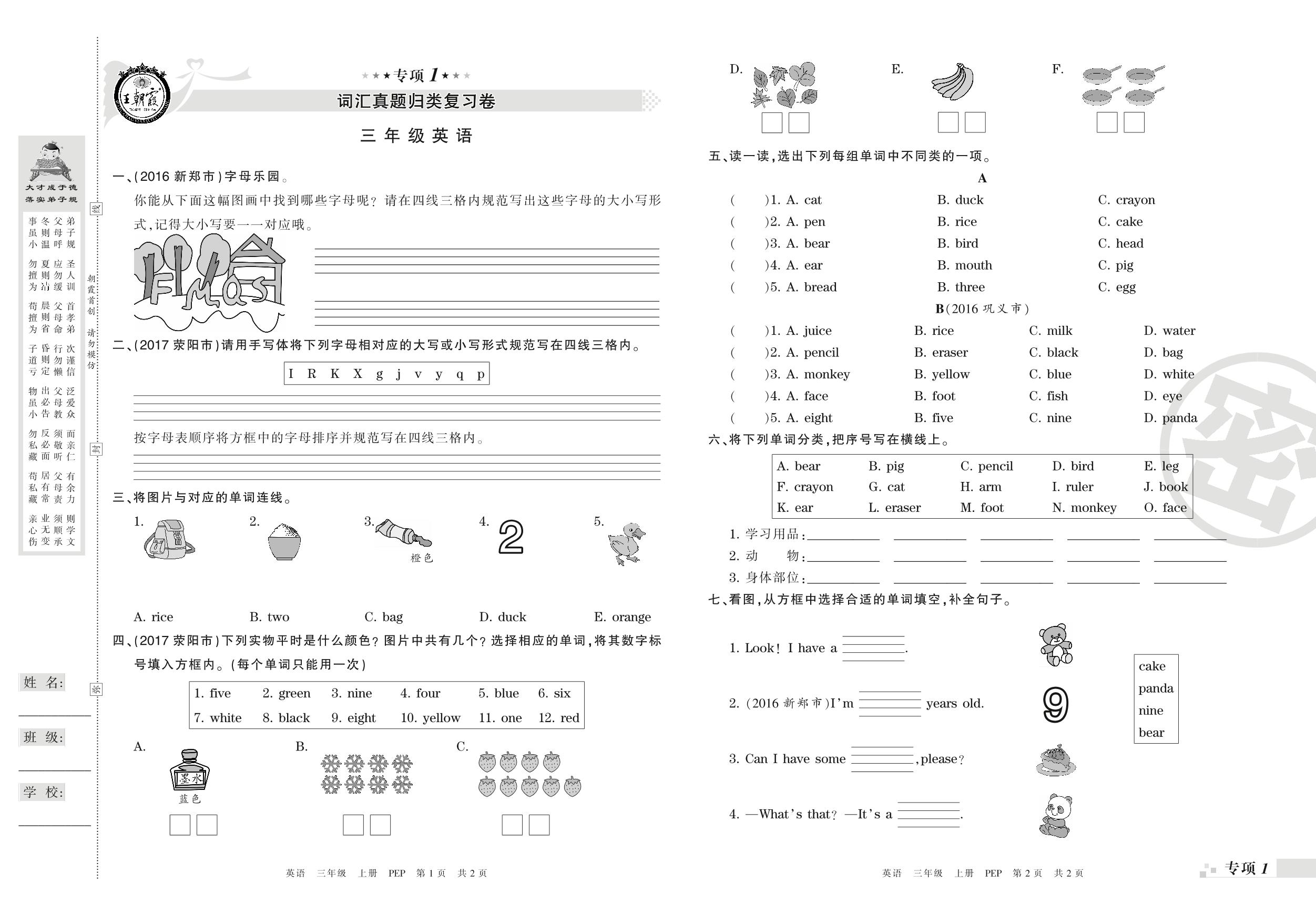 王朝霞期末专项卷——词汇、句子真题归类复习三年级上册英语(PEP版)【0】