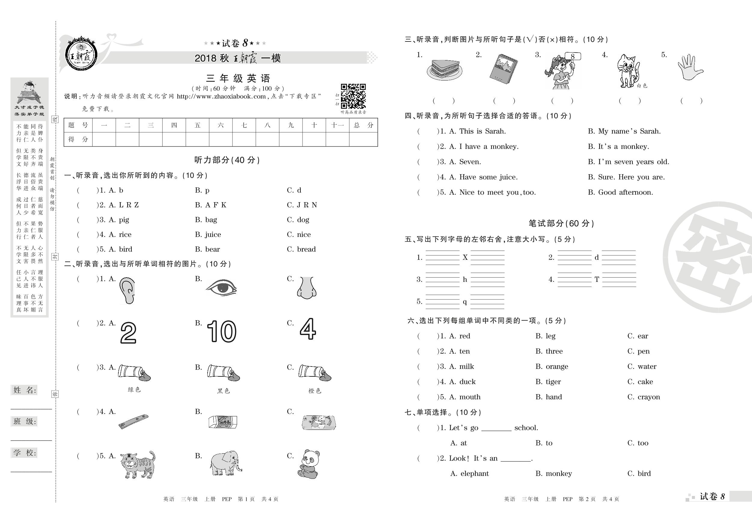 王朝霞期末模拟卷三年级上册英语(PEP版)_R210806194638【8】
