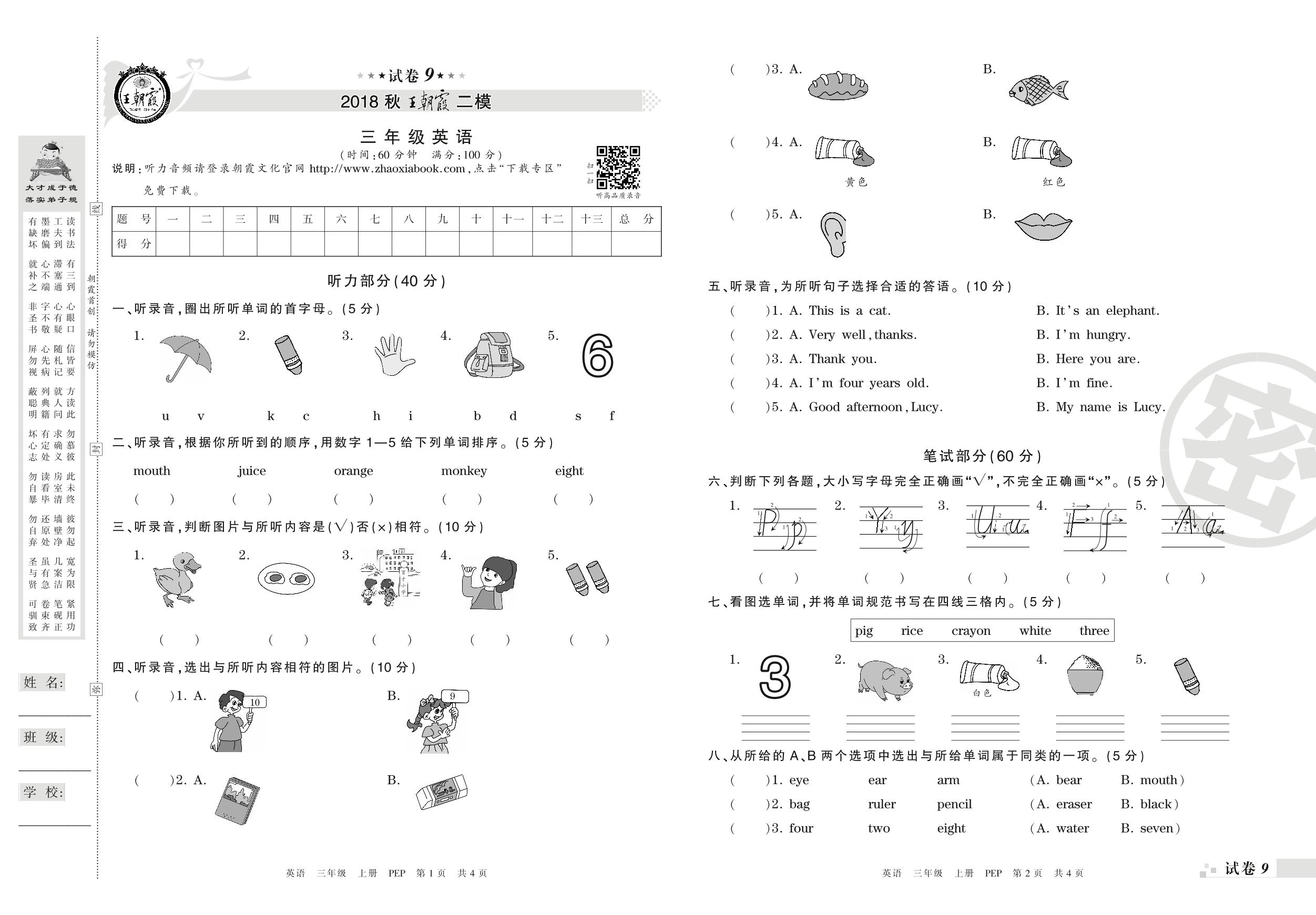 王朝霞期末模拟卷三年级上册英语(PEP版)_R210806194641【9】