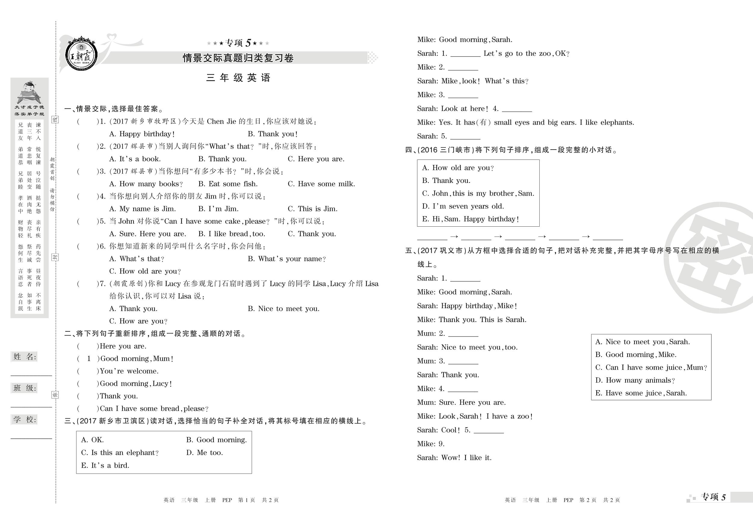 王朝霞期末专项卷——情景交际、阅读理解真题归类复习三年级上册英语(PEP版)_R210806194647【0】