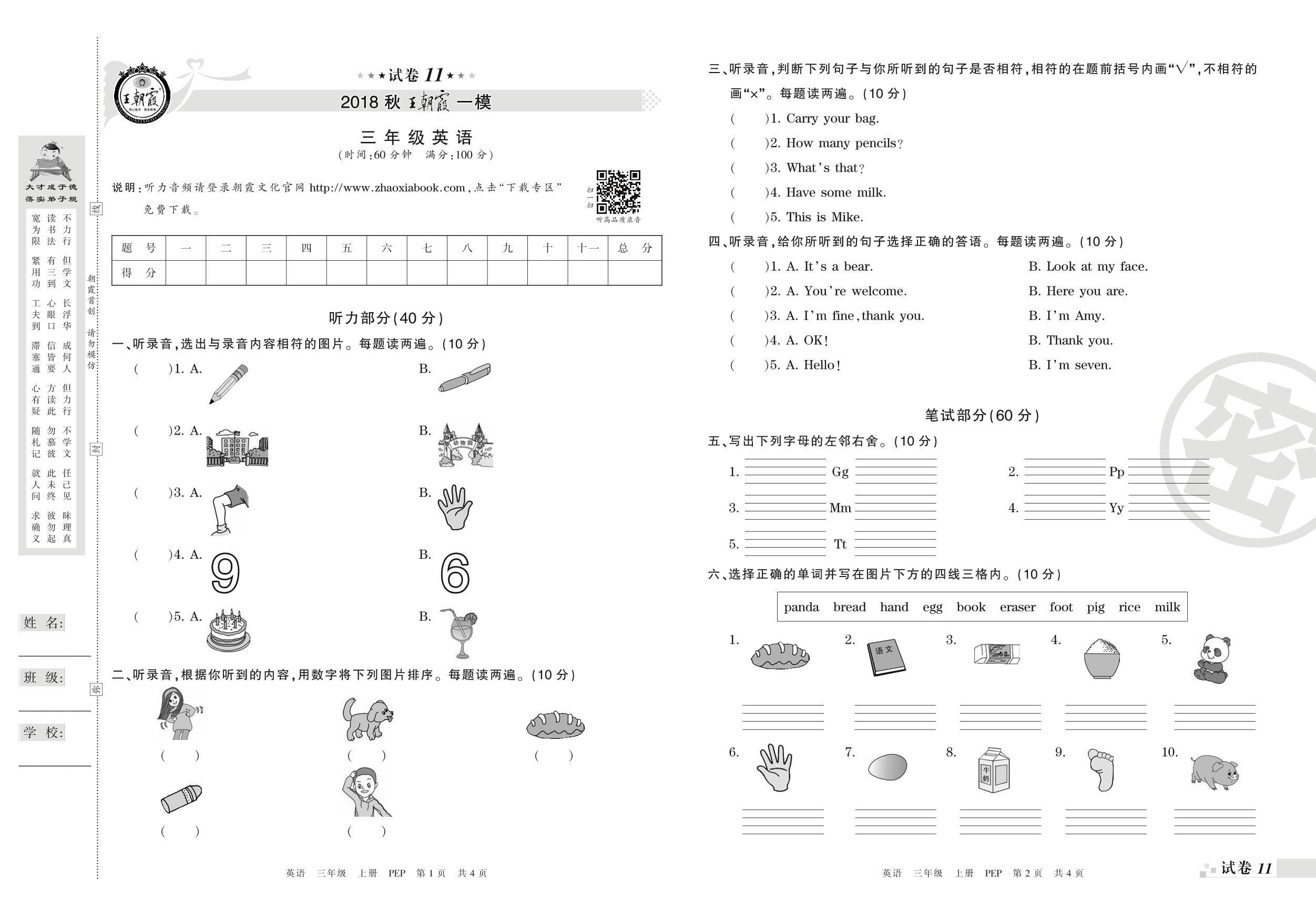 王朝霞期末模拟卷三年级上册英语(PEP版)_R210806194707【11】