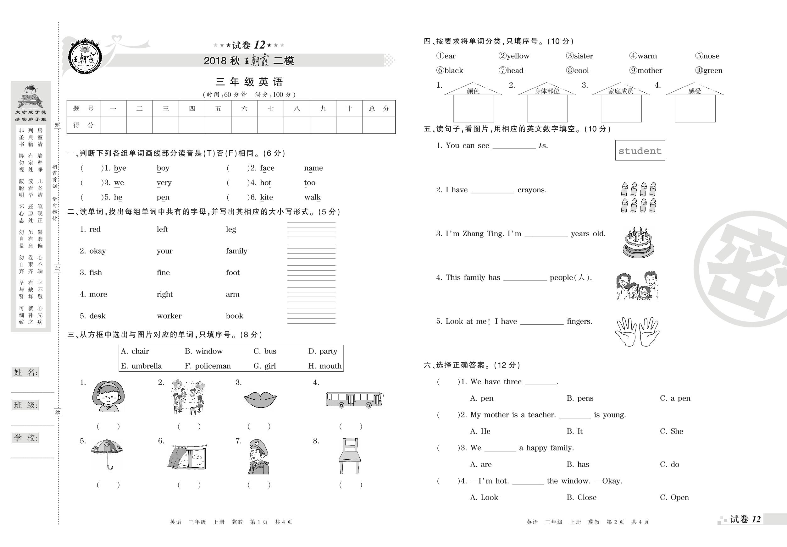 王朝霞期末模拟卷三年级上册英语(冀教版)_R210806194747【12】