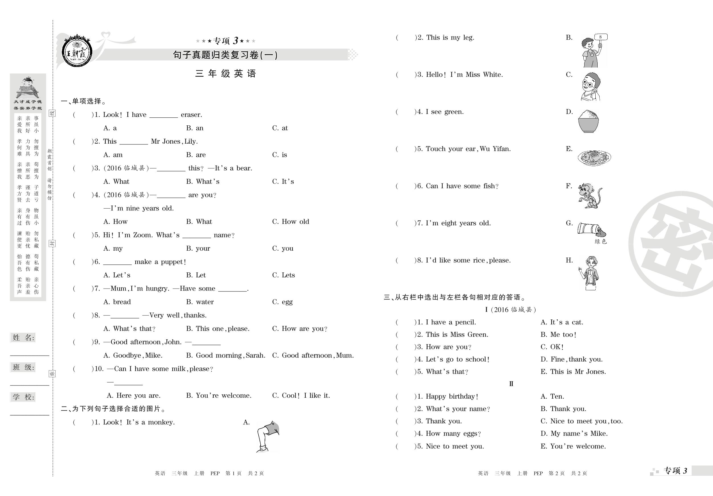 王朝霞期末专项卷——句子真题归类复习三年级上册英语(PEP版)_R210806194754【0】