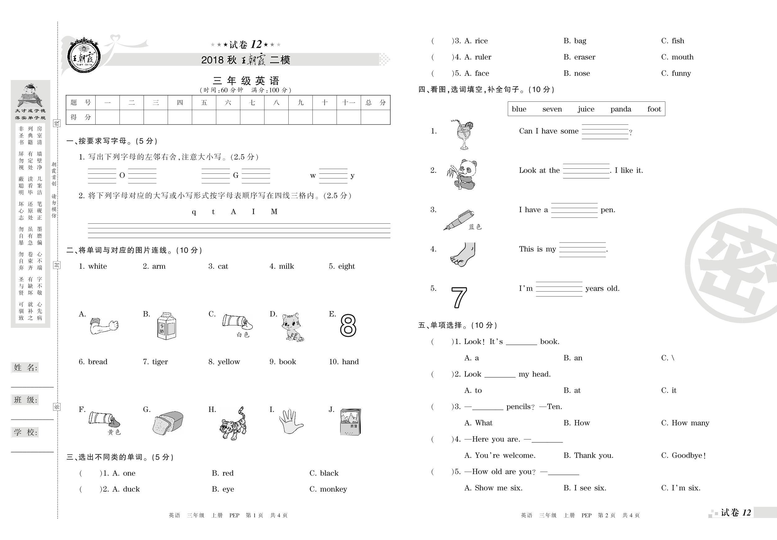王朝霞期末模拟卷三年级上册英语(PEP版)_R210806194848【12】