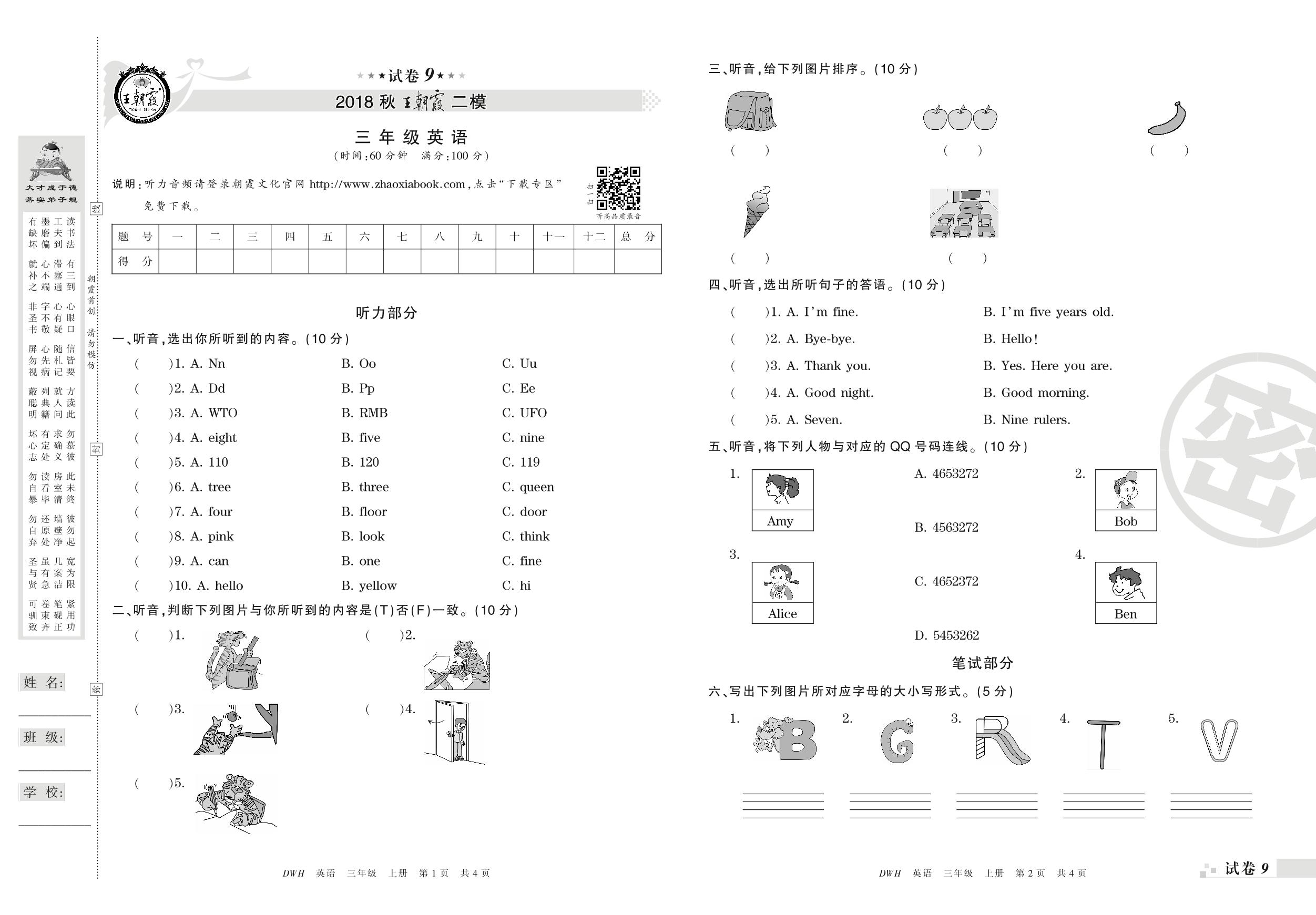 王朝霞期末模拟卷三年级上册英语(剑桥版)_R210806194946【9】