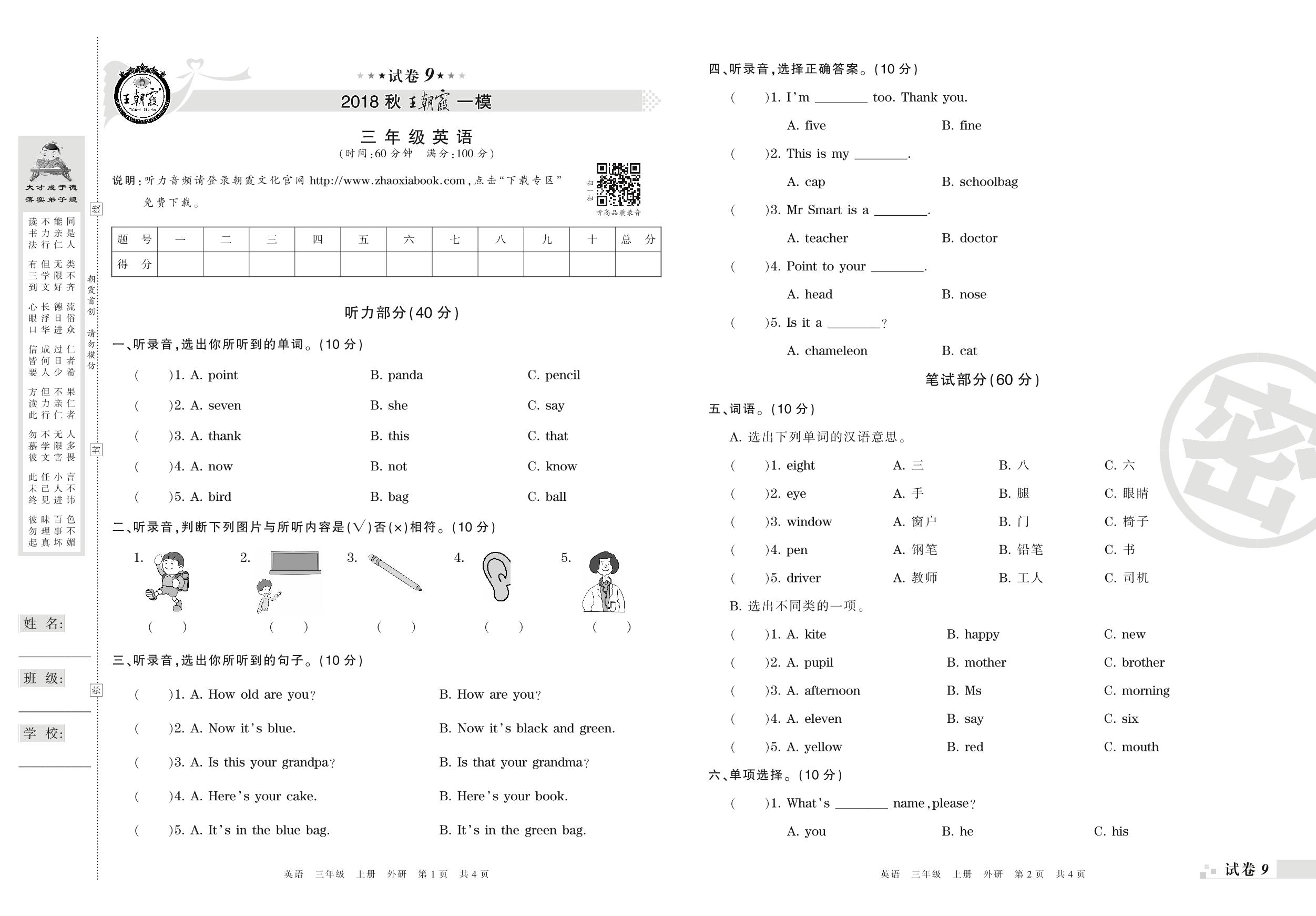 王朝霞期末模拟卷三年级上册英语(外研版)_R210806195056【9】