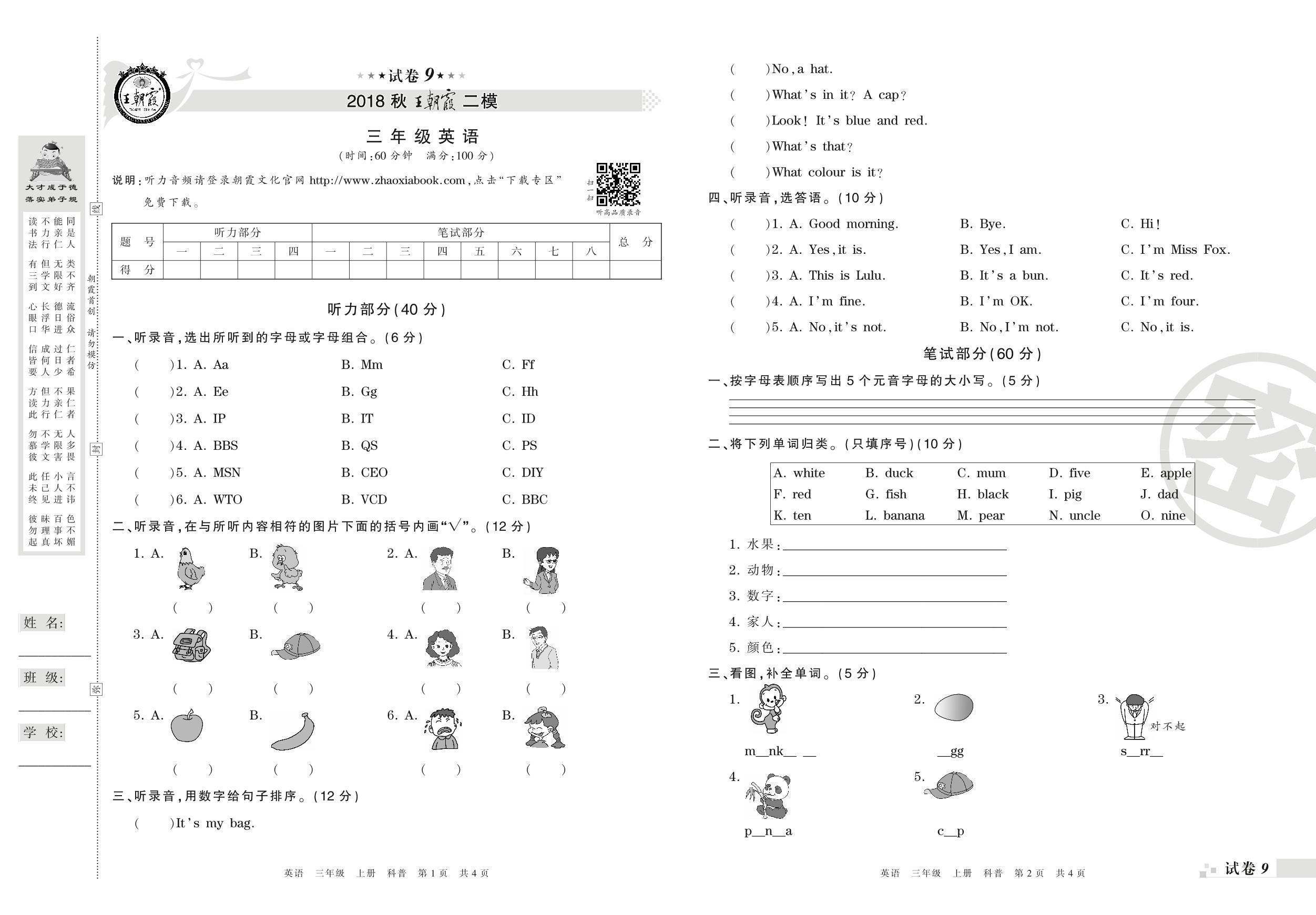 王朝霞期末模拟卷三年级上册英语(科普版)_R210806195126【9】