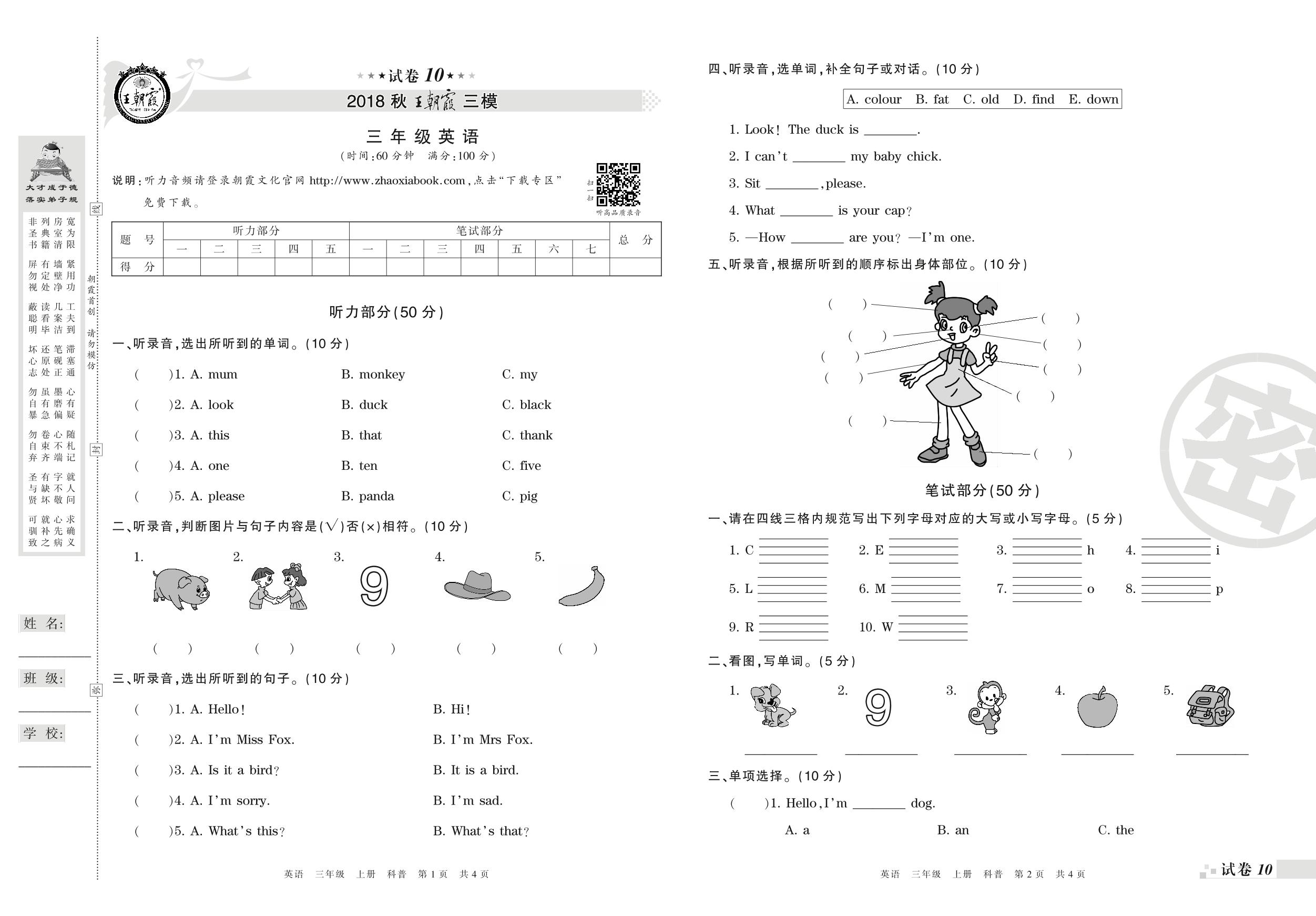 王朝霞期末模拟卷三年级上册英语(科普版)_R210806195128【10】