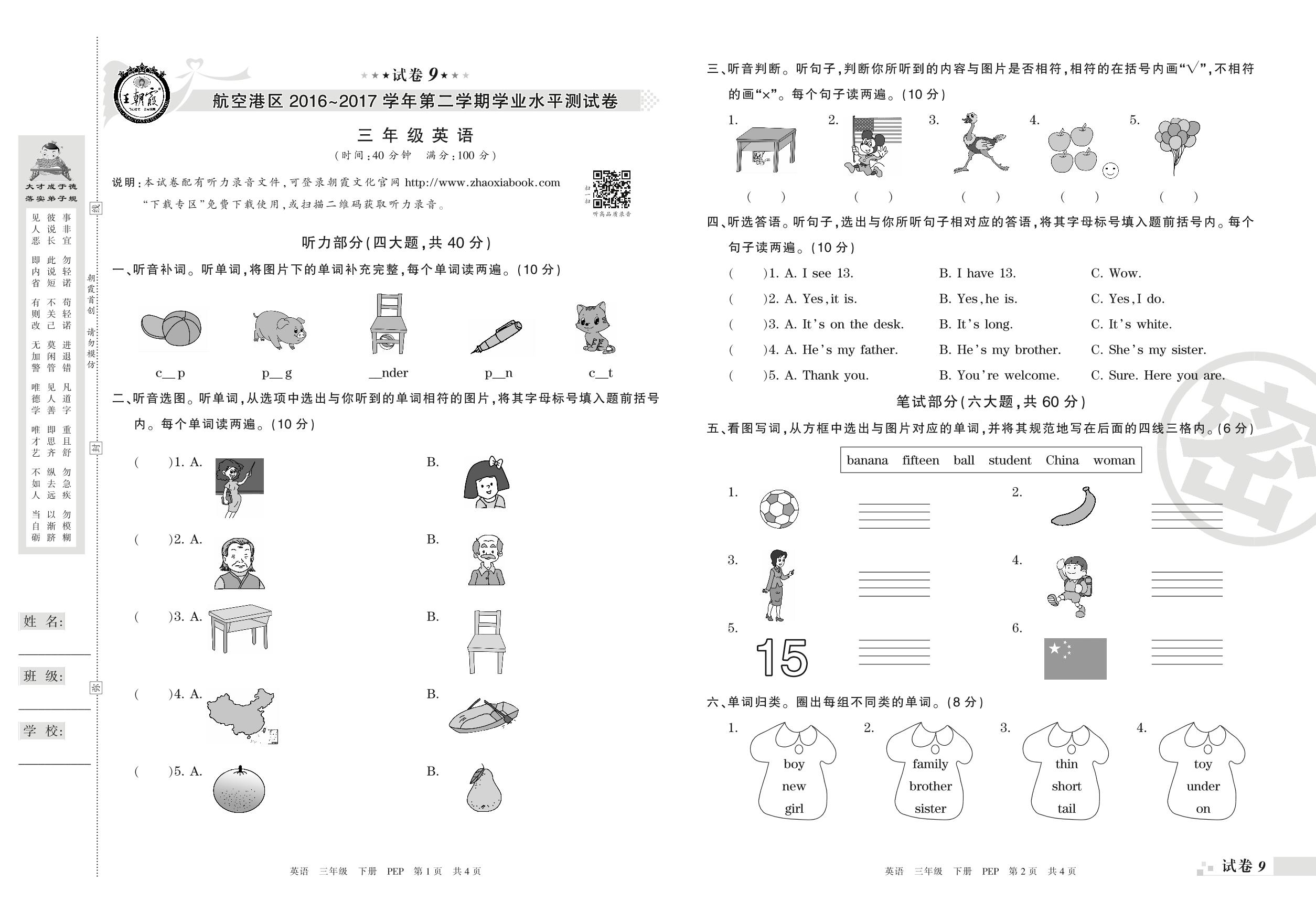 2016-2017学年第二学期郑州市航空城区三年级英语试卷(PEP版)_R210806195328【9】