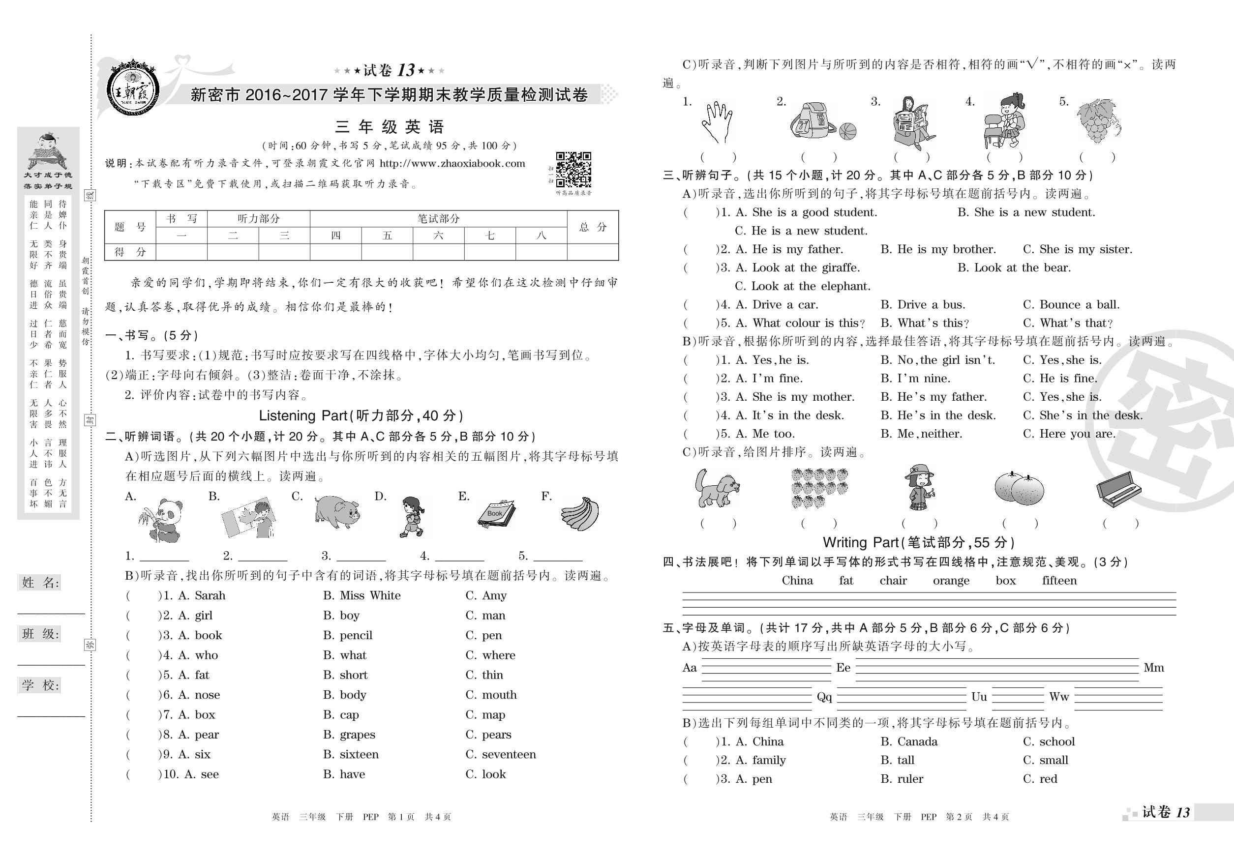 2016-2017学年第二学期新密市三年级英语试卷(PEP版)_R210806195350【13】