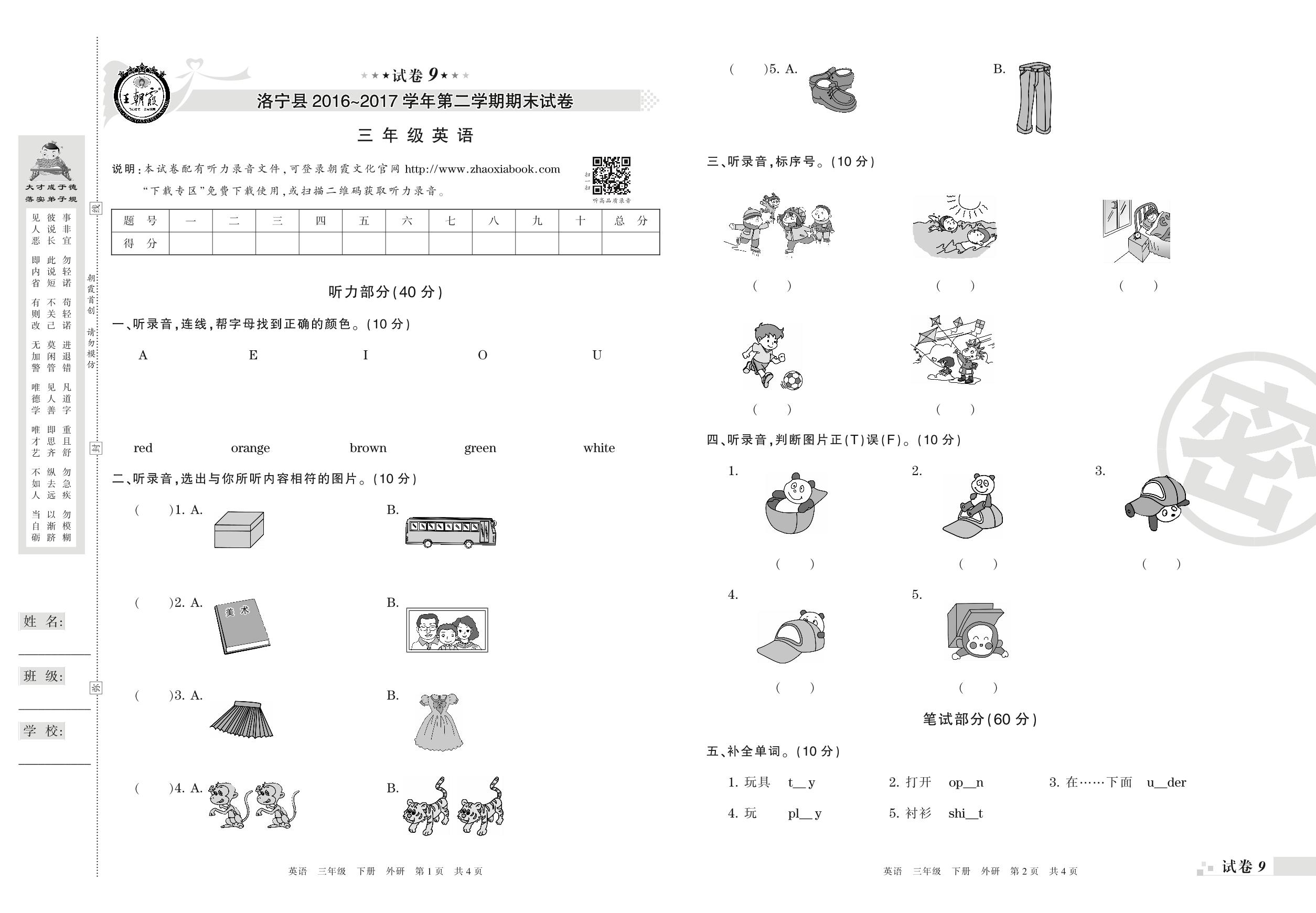 2016-2017学年第二学期洛阳市洛宁县三年级英语试卷(外研版)【9】