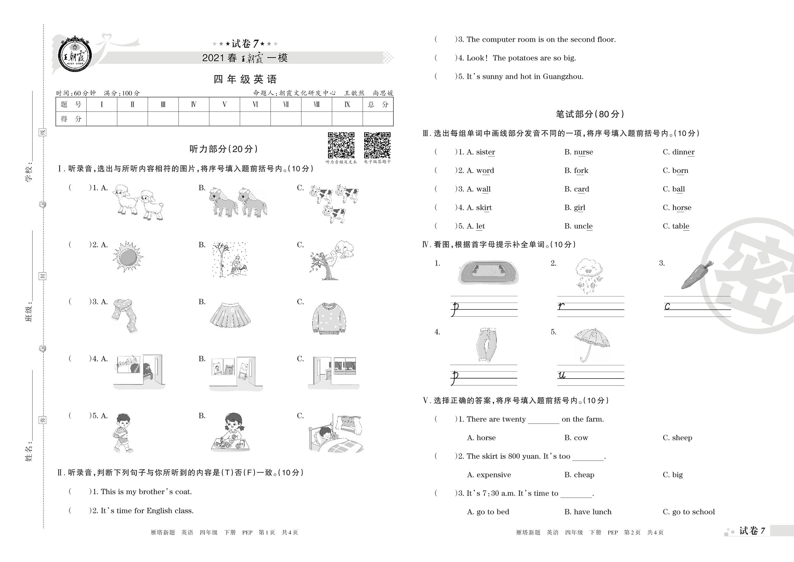 王朝霞期末模拟卷四年级下册英语(PEP版)_R21080783523【7】