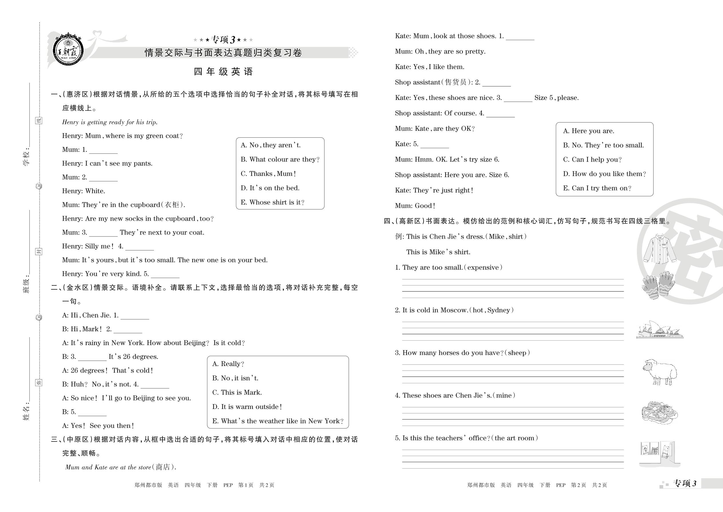 王朝霞期末专项卷——情景交际与书面表达真题归类复习、绘本阅读四年级下册英语(PEP版)_R21080783553【0】