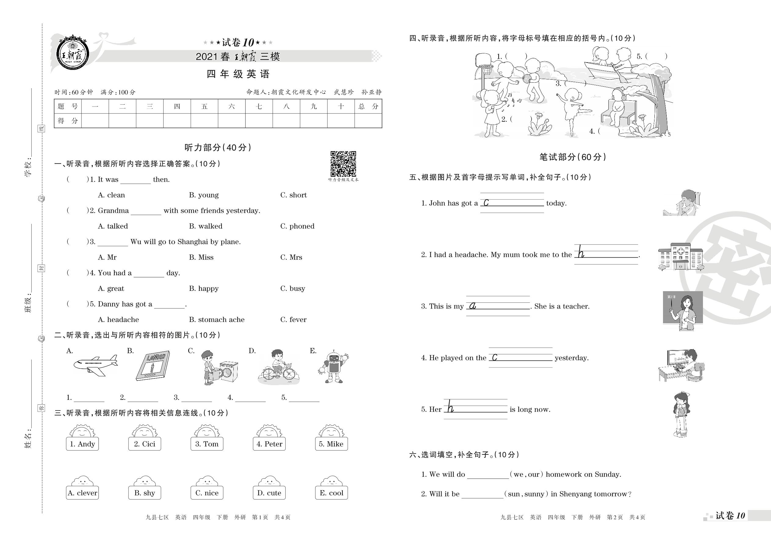 王朝霞期末模拟卷四年级下册英语(外研版)_R21080783857【10】