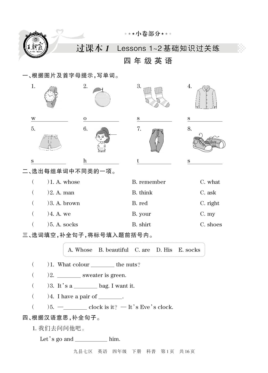 王朝霞期末过课本四年级下册英语(科普版)_R21080783902【0】