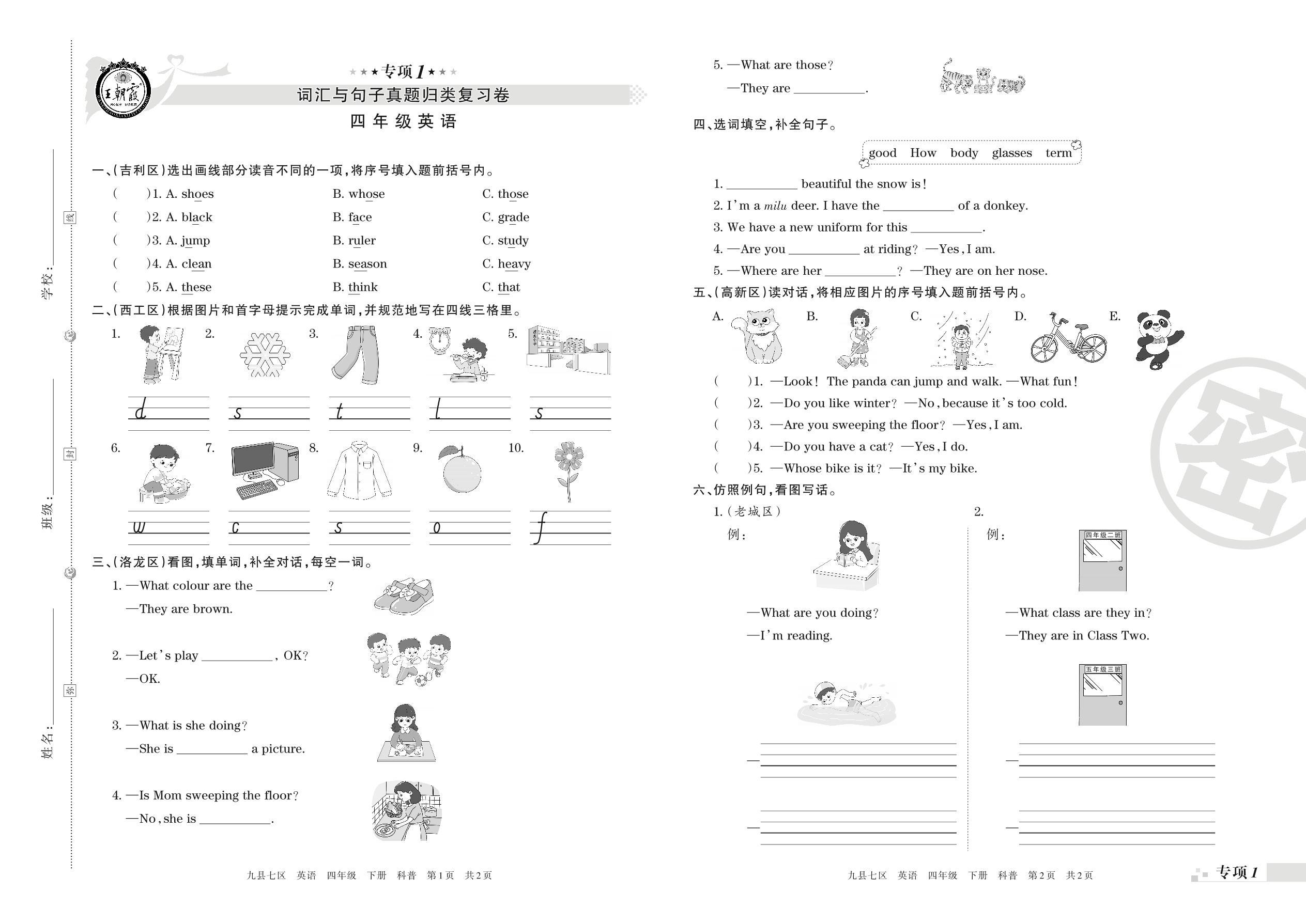 王朝霞期末专项卷——词汇与句子、情景交际真题归类复习四年级下册英语(科普版)_R21080783907【0】