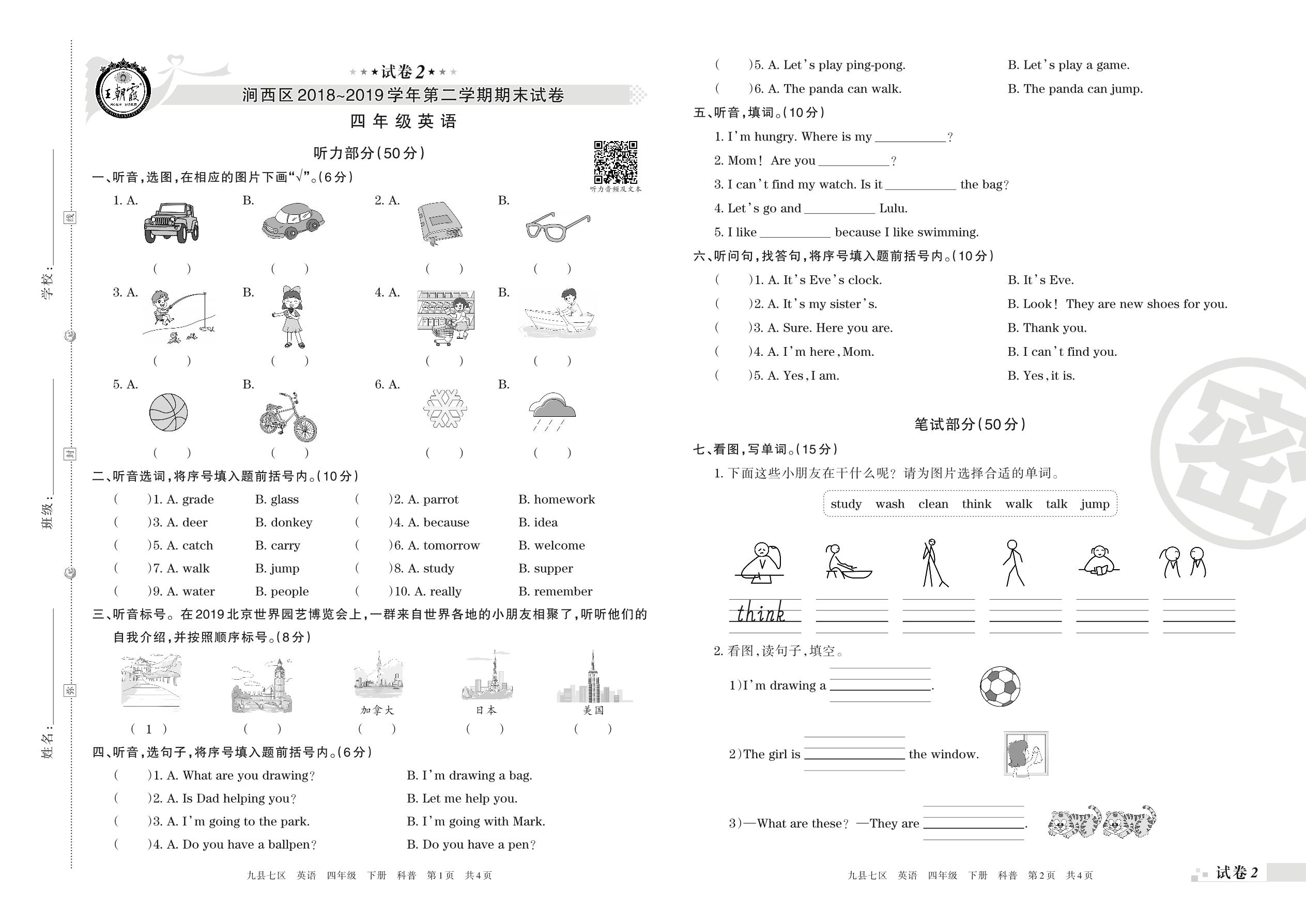 2018-2019学年第二学期洛阳市涧西区四年级英语试卷(科普版)_R21080783917【2】