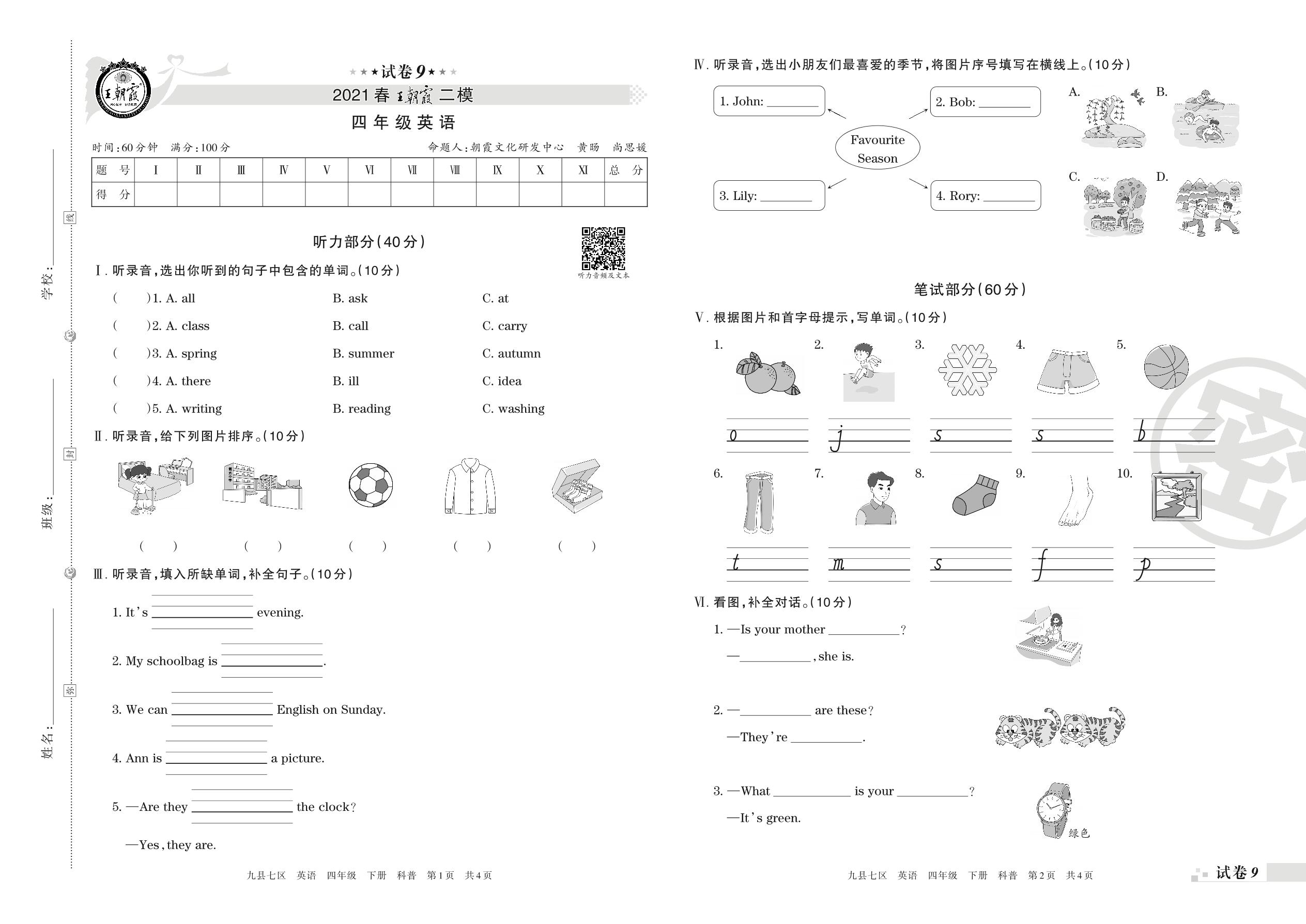 王朝霞期末模拟卷四年级下册英语(科普版)_R21080783954【9】
