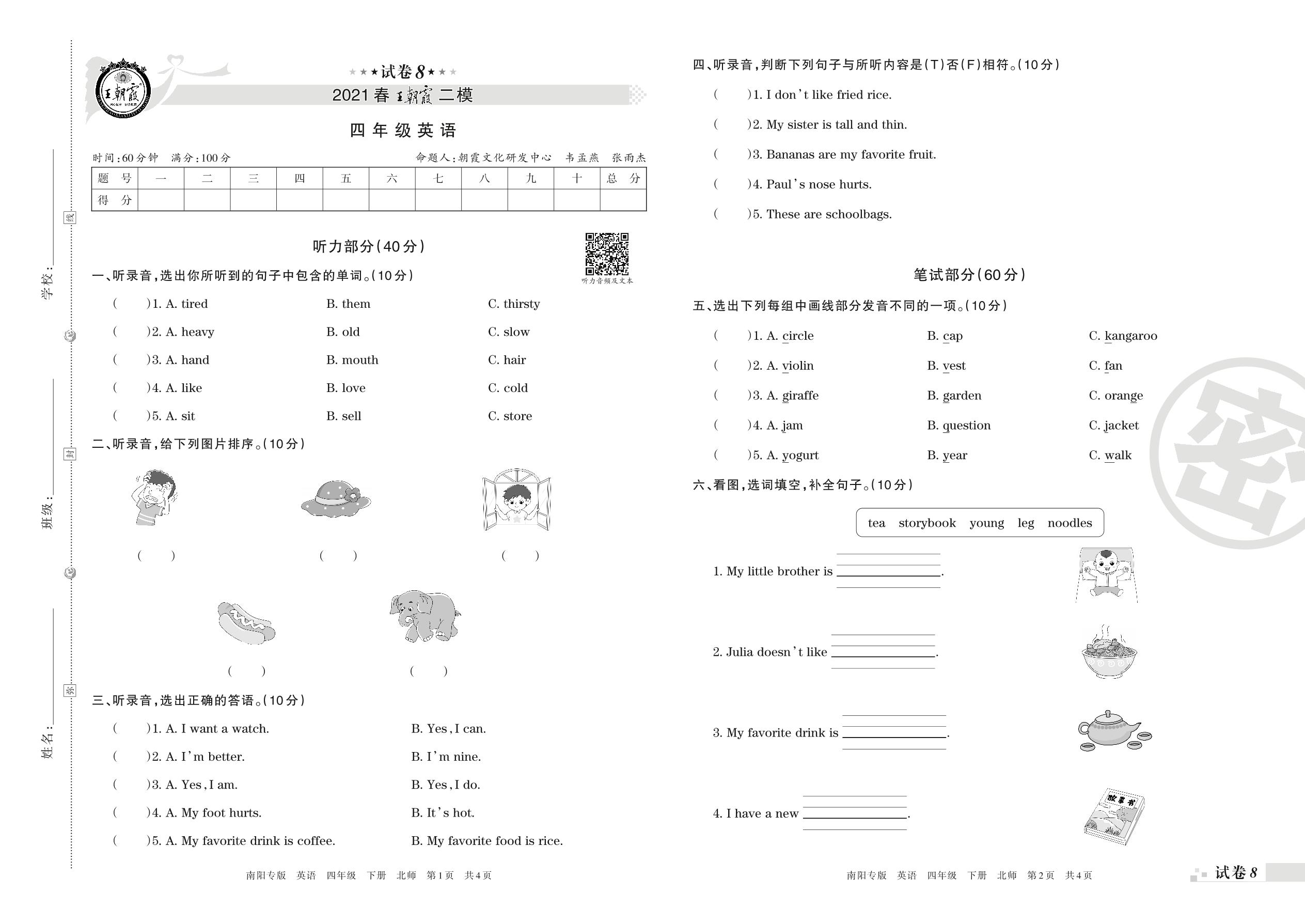 王朝霞期末模拟卷四年级下册英语(北师版)_R21080784207【8】