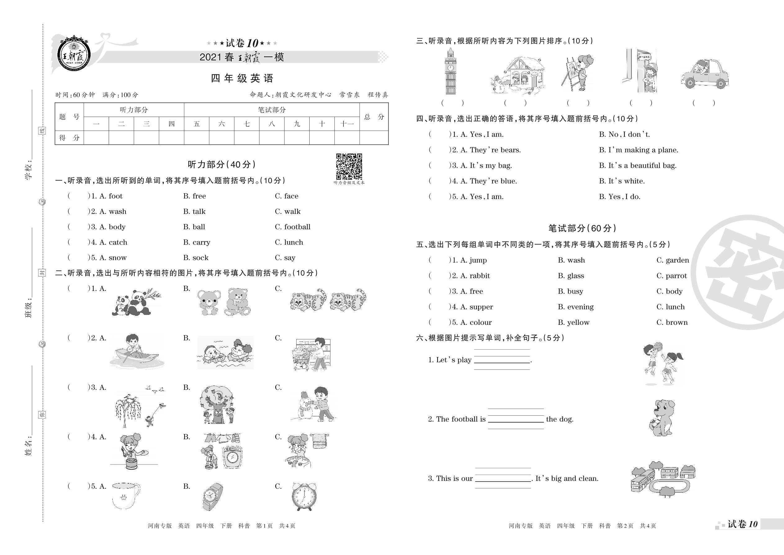 王朝霞期末模拟卷四年级下册英语(科普版)_R21080784457【10】